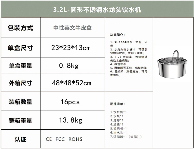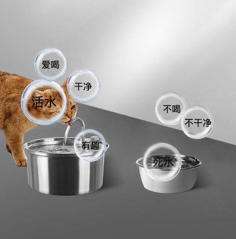 국경 간 아마존 애완 동물 물 디스펜서 고양이 음료 스테인레스 스틸 수도꼭지 개 물 공급 공장 직접 폭발스토어 가기