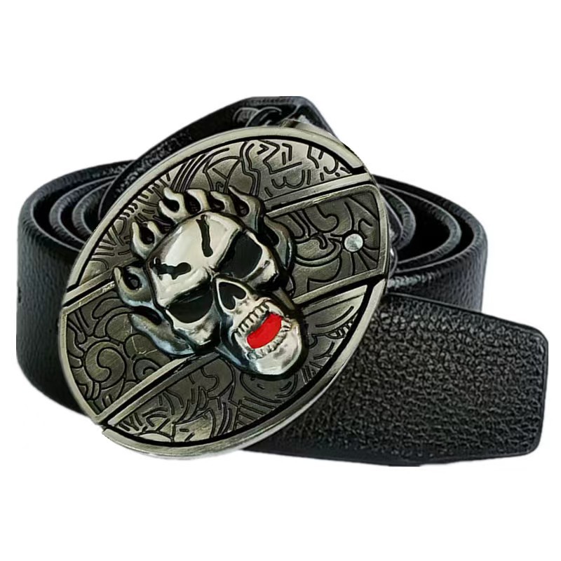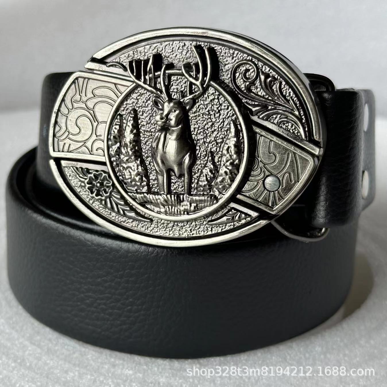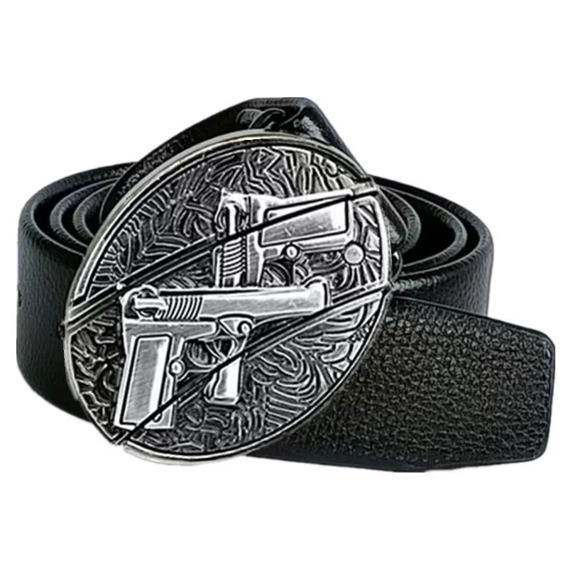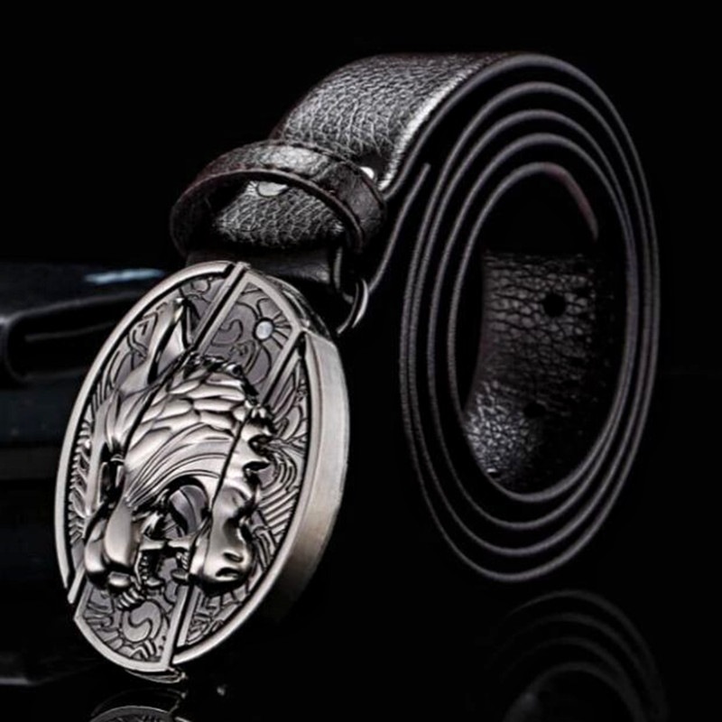 双面头层纯牛皮腰带男士个性防身皮带带刀青少年学生潮流户外裤腰