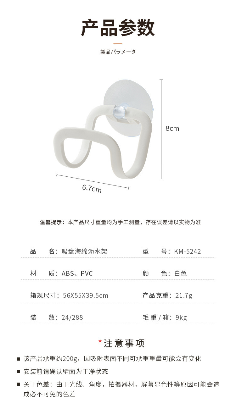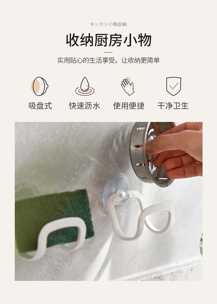KM5242 주방 스폰지 싱크 후크 강철 공 수세미 천 걸레 배수 랙 흡입 컵 보관 랙