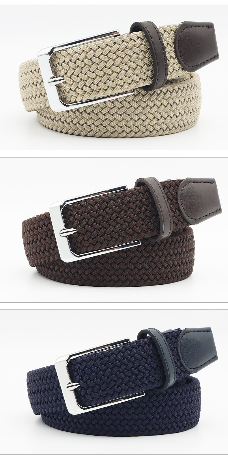 캔버스 벨트 남성용 패션 캐주얼 비 다공성 탄성 짠 벨트 모든 매치 합금 핀 버클 스포츠 통기성 벨트