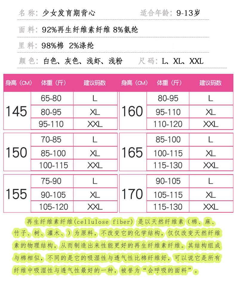 여아 속옷 개발 기간 초등학생 11-12 세 안티 범프 여름 얇은 여아 어린이 조끼 단계 I스토어 가기