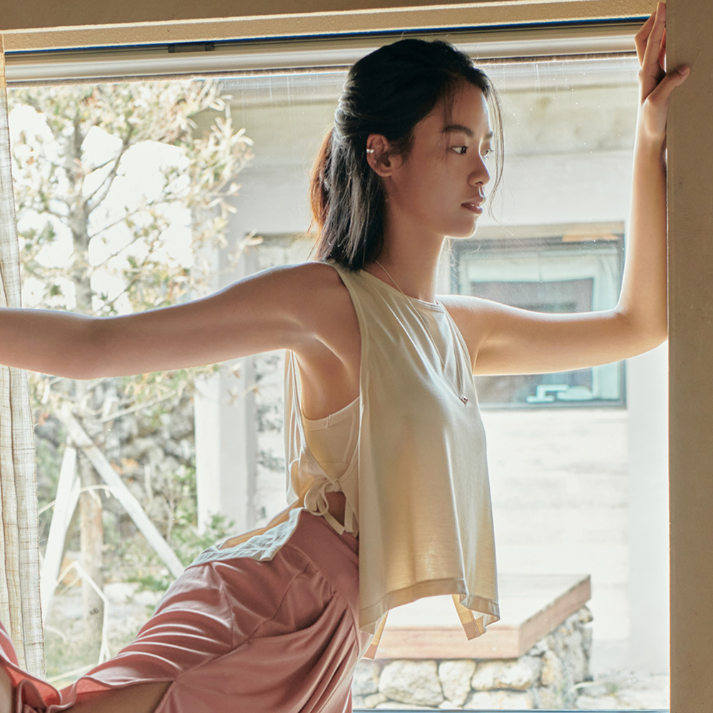 요가 블라우스 레이스업 조끼 민소매 속건 스포츠 탑 경량 느슨한 민소매 요가웨어 피트니스웨어