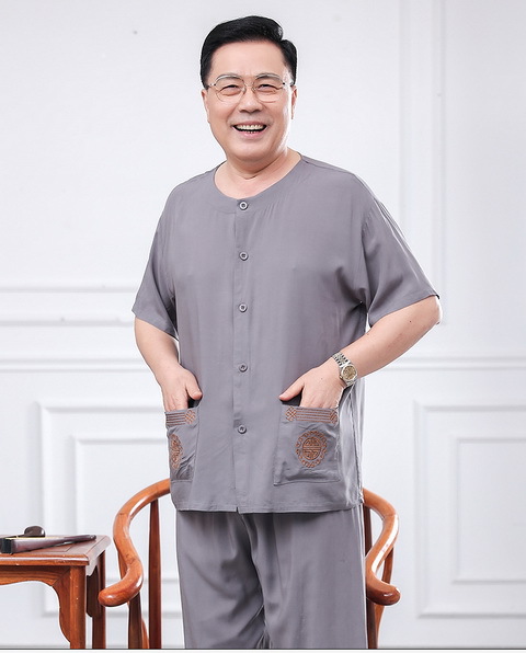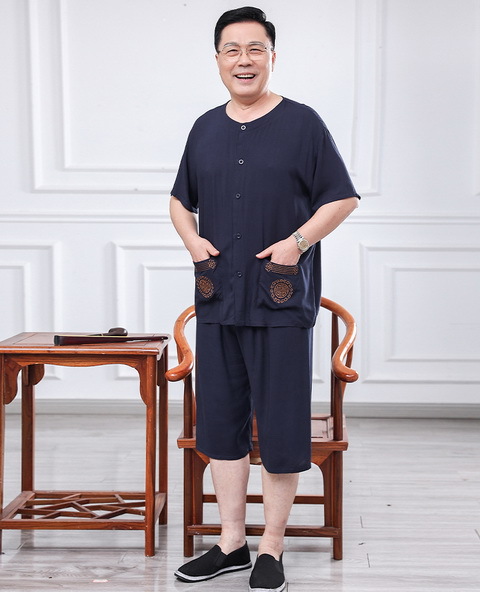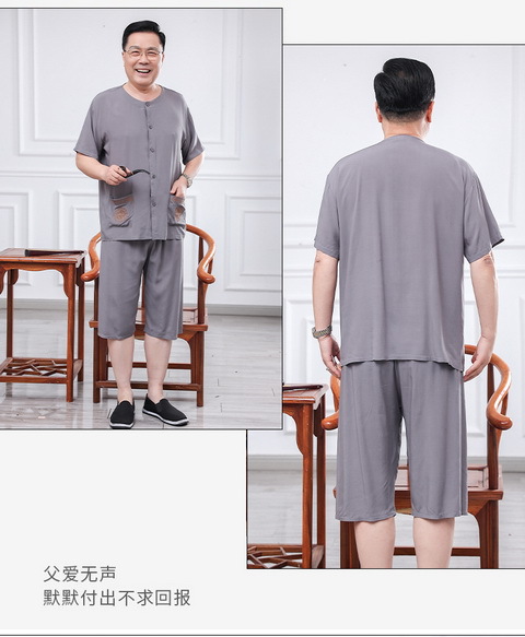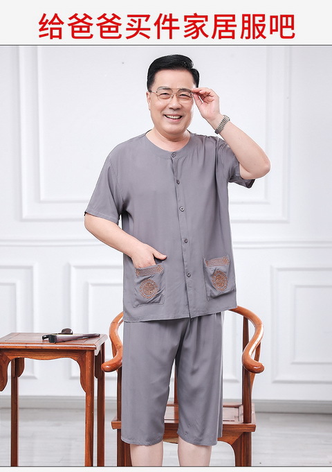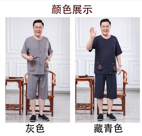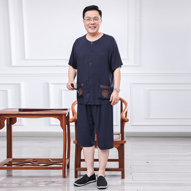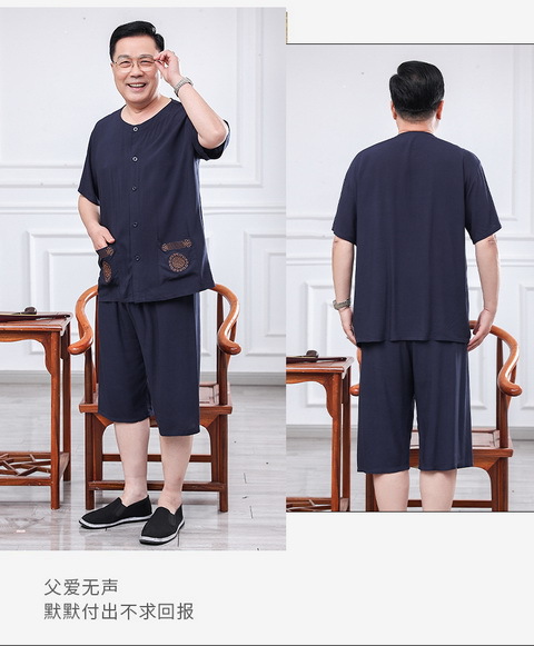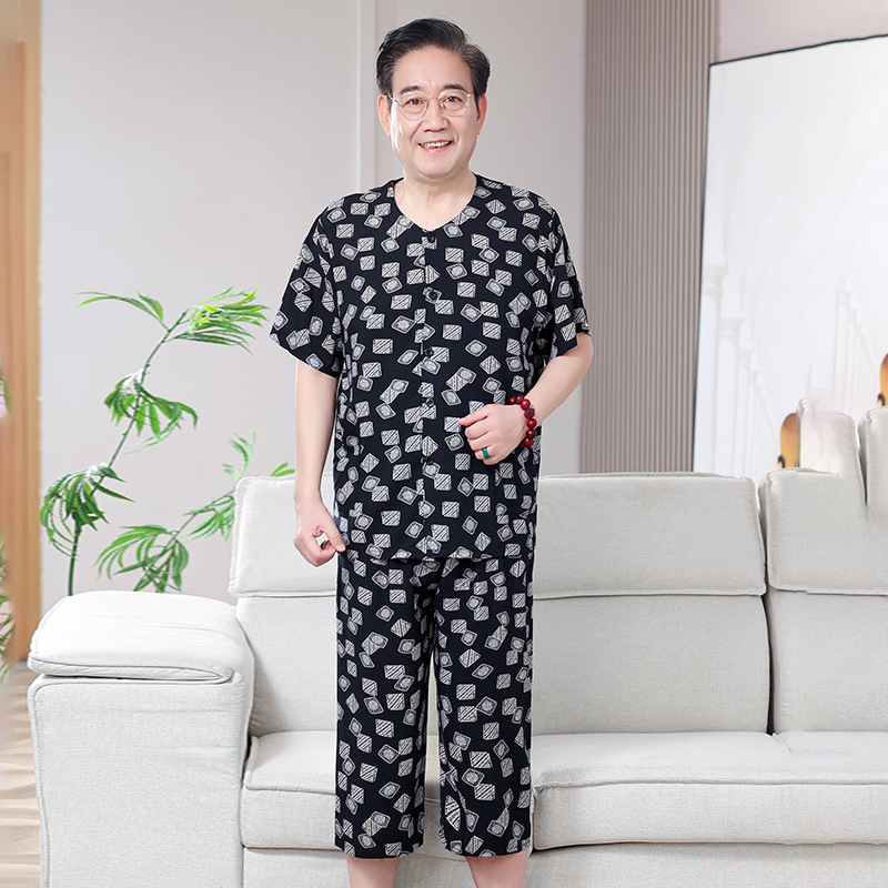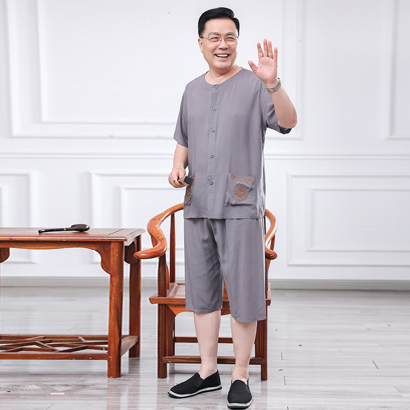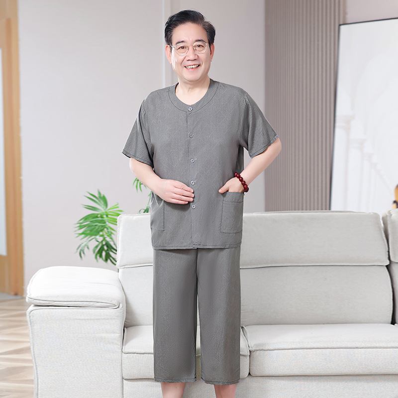 60 세의 70 세 아버지의 집 옷 면 반팔 반바지 카디건 할아버지 잠옷 세트 중년 및 노인 여름 레저