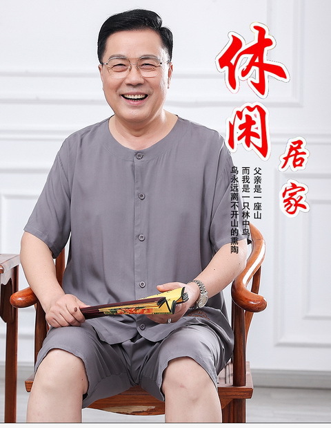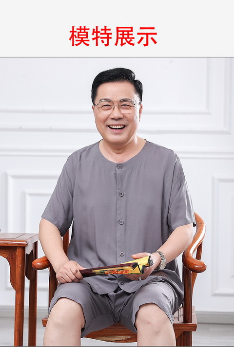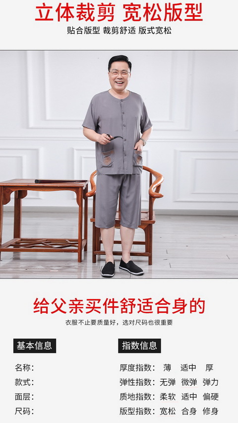 60 세의 70 세 아버지의 집 옷 면 반팔 반바지 카디건 할아버지 잠옷 세트 중년 및 노인 여름 레저스토어 가기