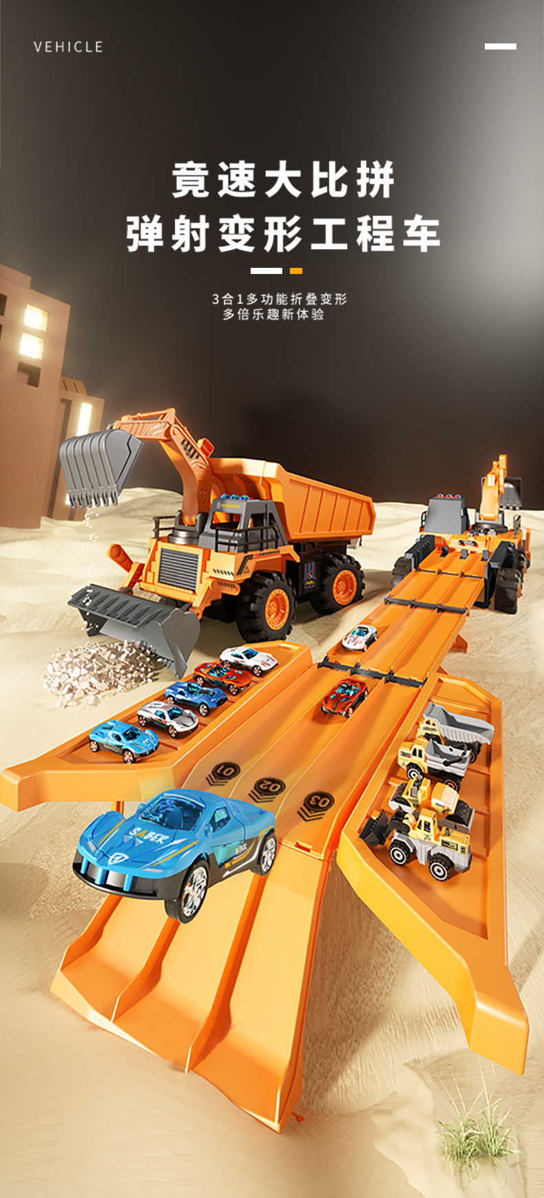 [Guangwei 계몽 소스 팩토리] 음향 광학 폴딩 변형 3 트랙 이젝션 엔지니어링 차량 선물 보관 및 운송스토어 가기