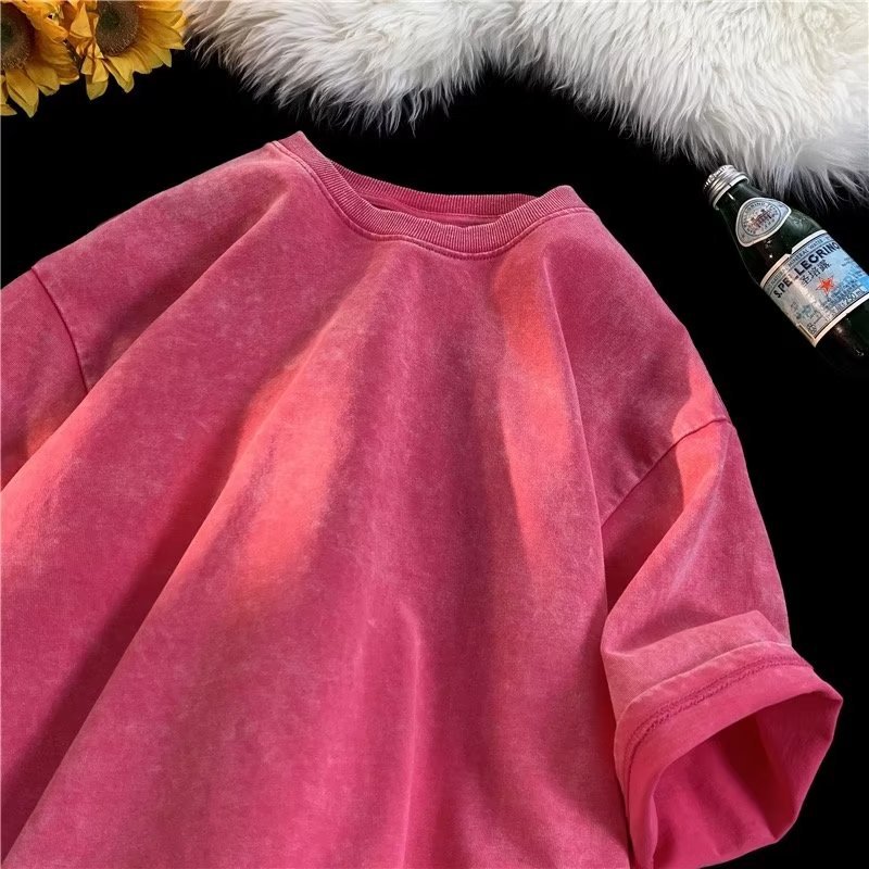 무거운 고민 솔리드 컬러 반팔 티셔츠 남자 여름 옷 플러스 대형 유행 통통한 느슨한 라운드 넥 탑 베이스 셔츠스토어 가기