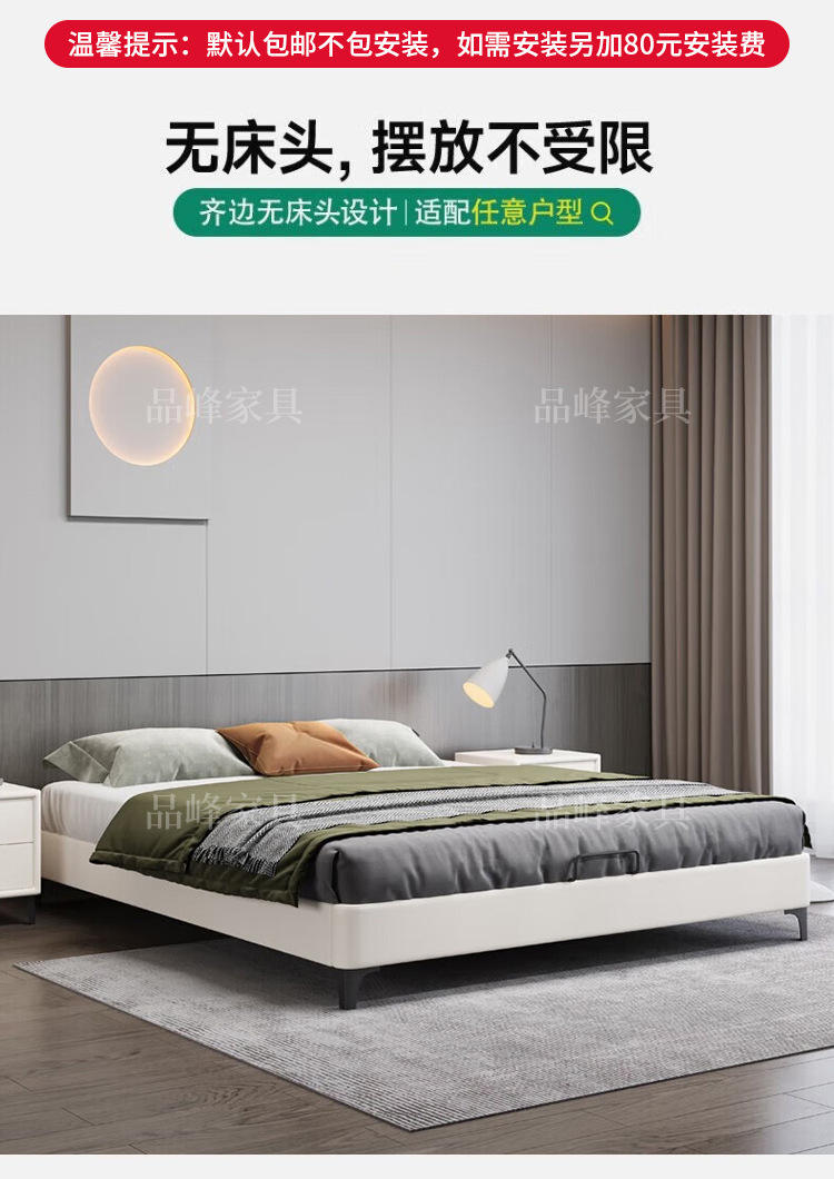 현대 간단한 고양이 스크래치 가죽 침대 1.8 m 작은 아파트 미니멀리스트 스터디 룸 없음 침대 등받이 빛 럭셔리 보관 다다미 침대스토어 가기