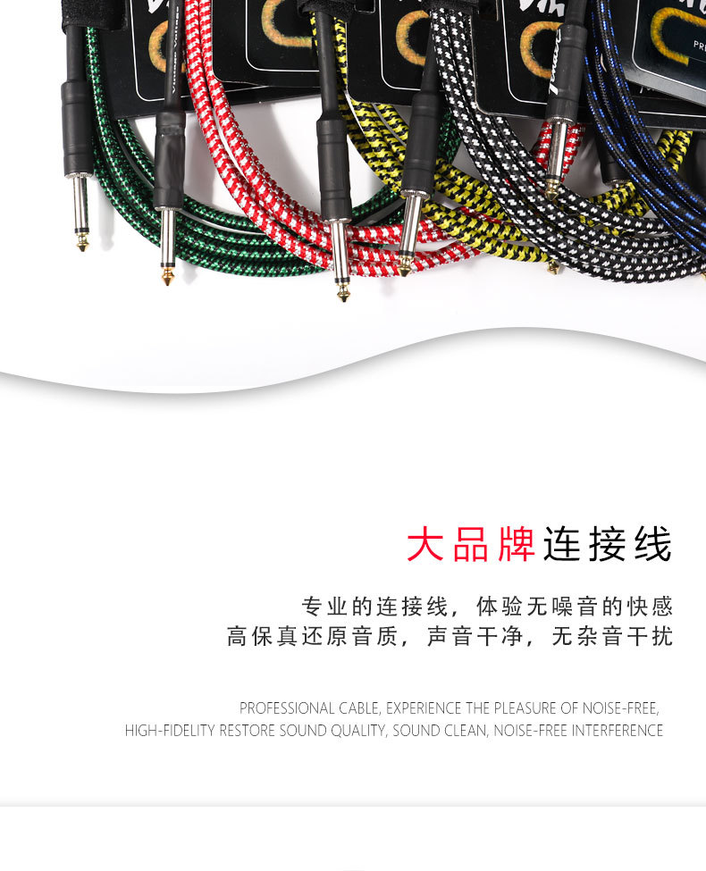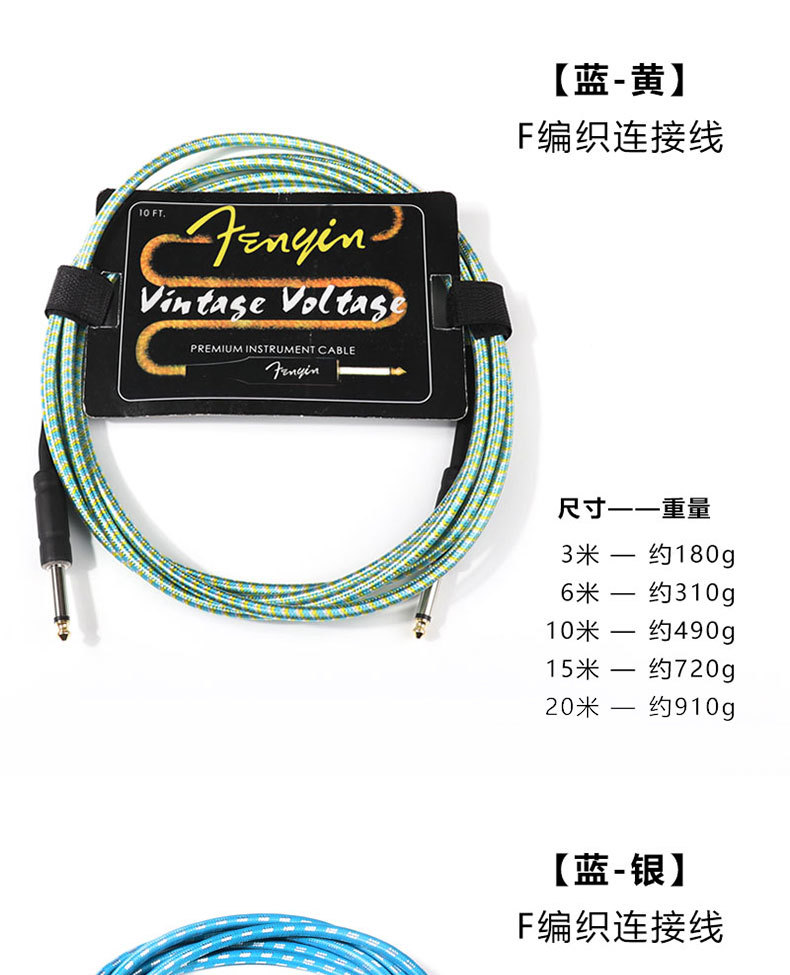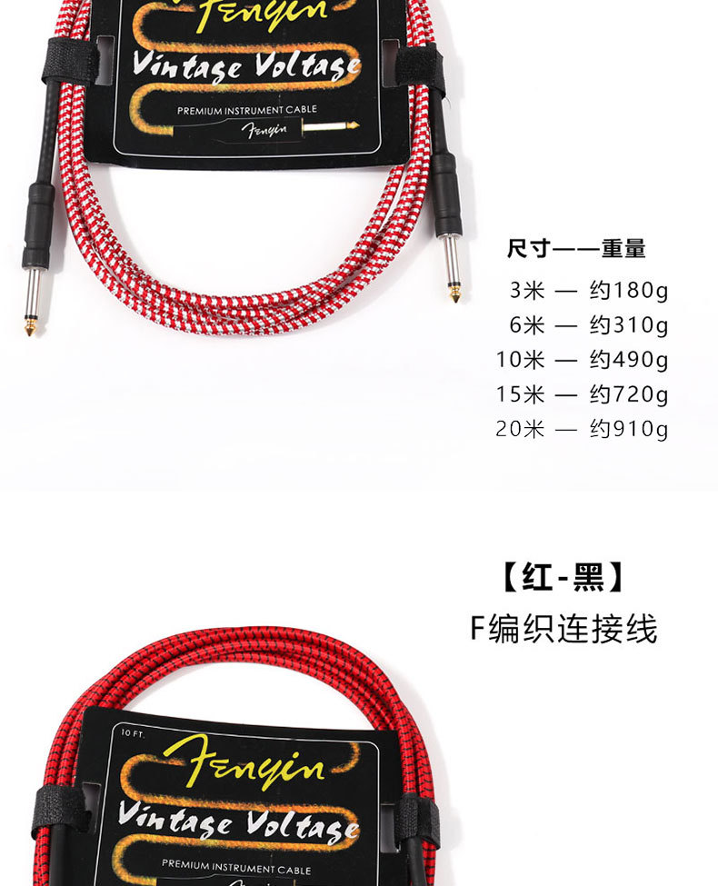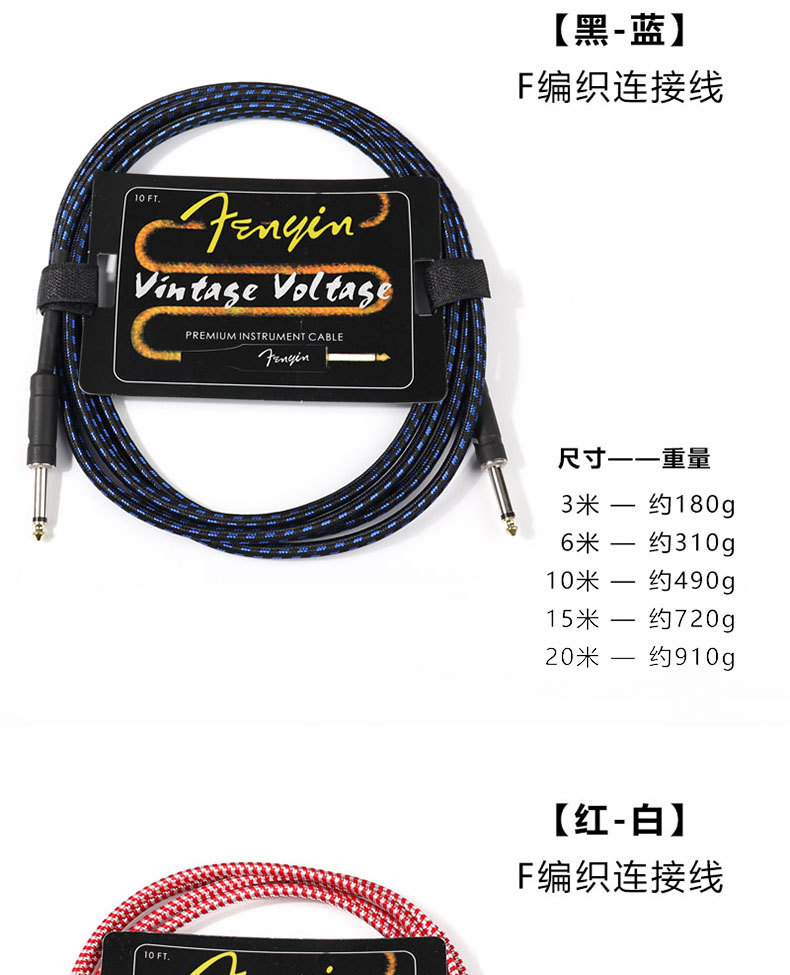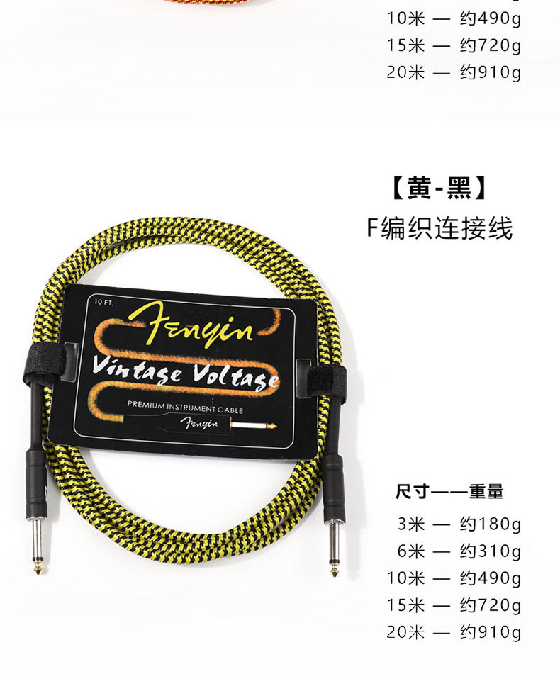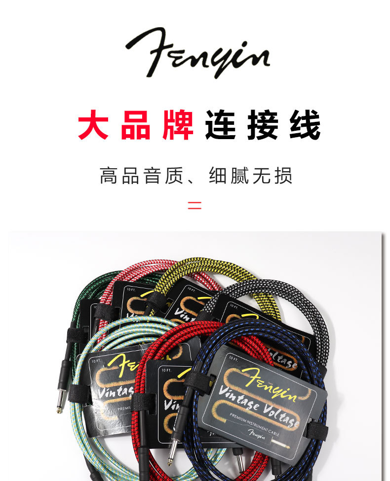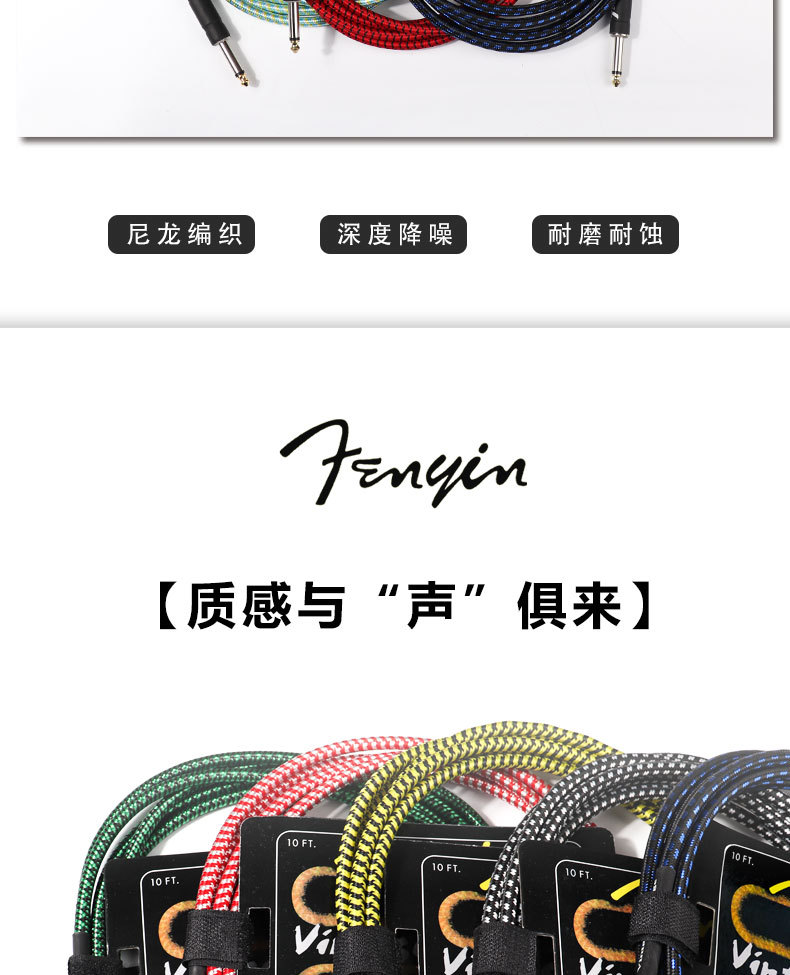 FenD 기타 연결 케이블 3.6m 10m 브레이드 노이즈 감소 일렉트릭 기타/베이스 오디오 연결 케이블