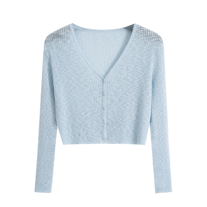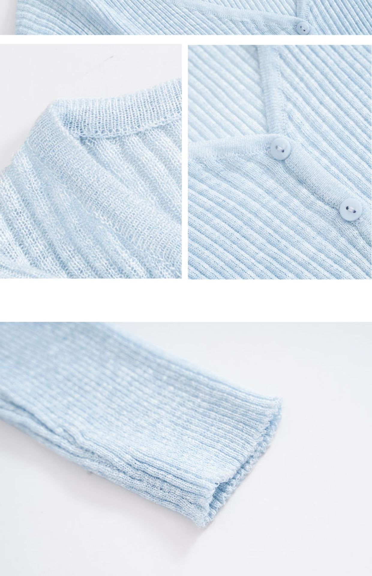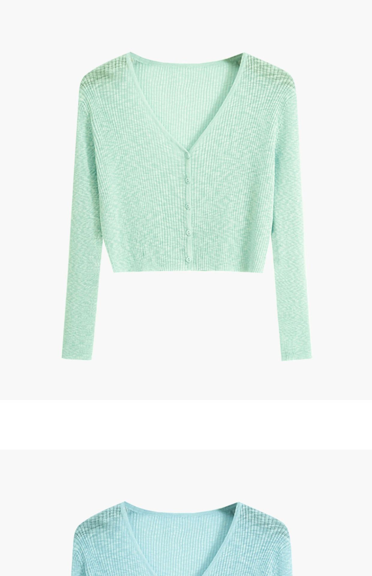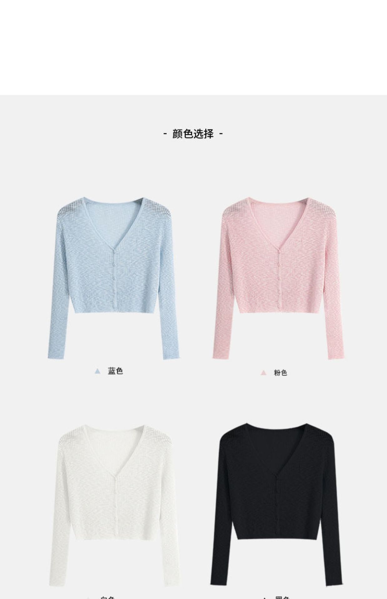 아이스 실크 니트 가디건 얇은 여성용 여름 자외선 차단제 스몰 블라우스 코트 V-넥 긴 소매 외부 짧은 에어컨 셔츠 탑