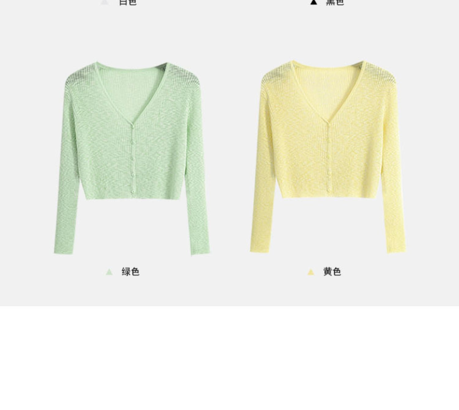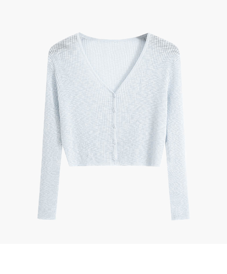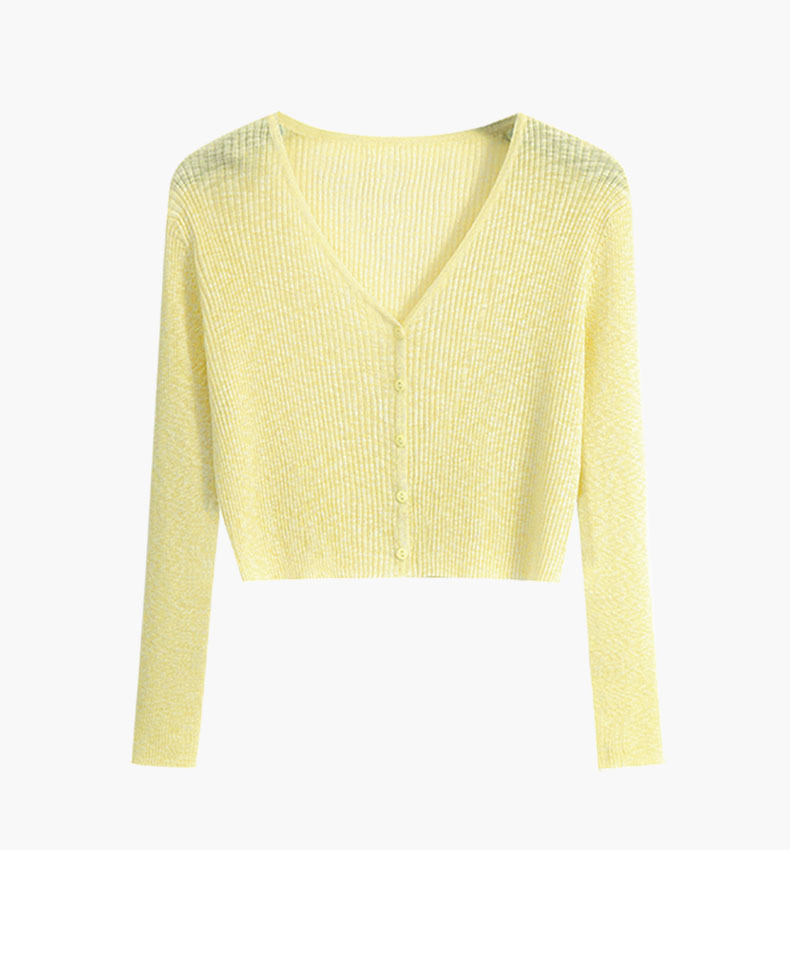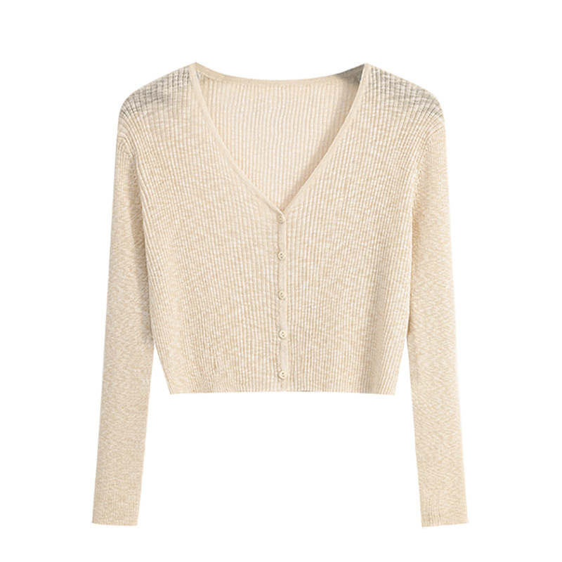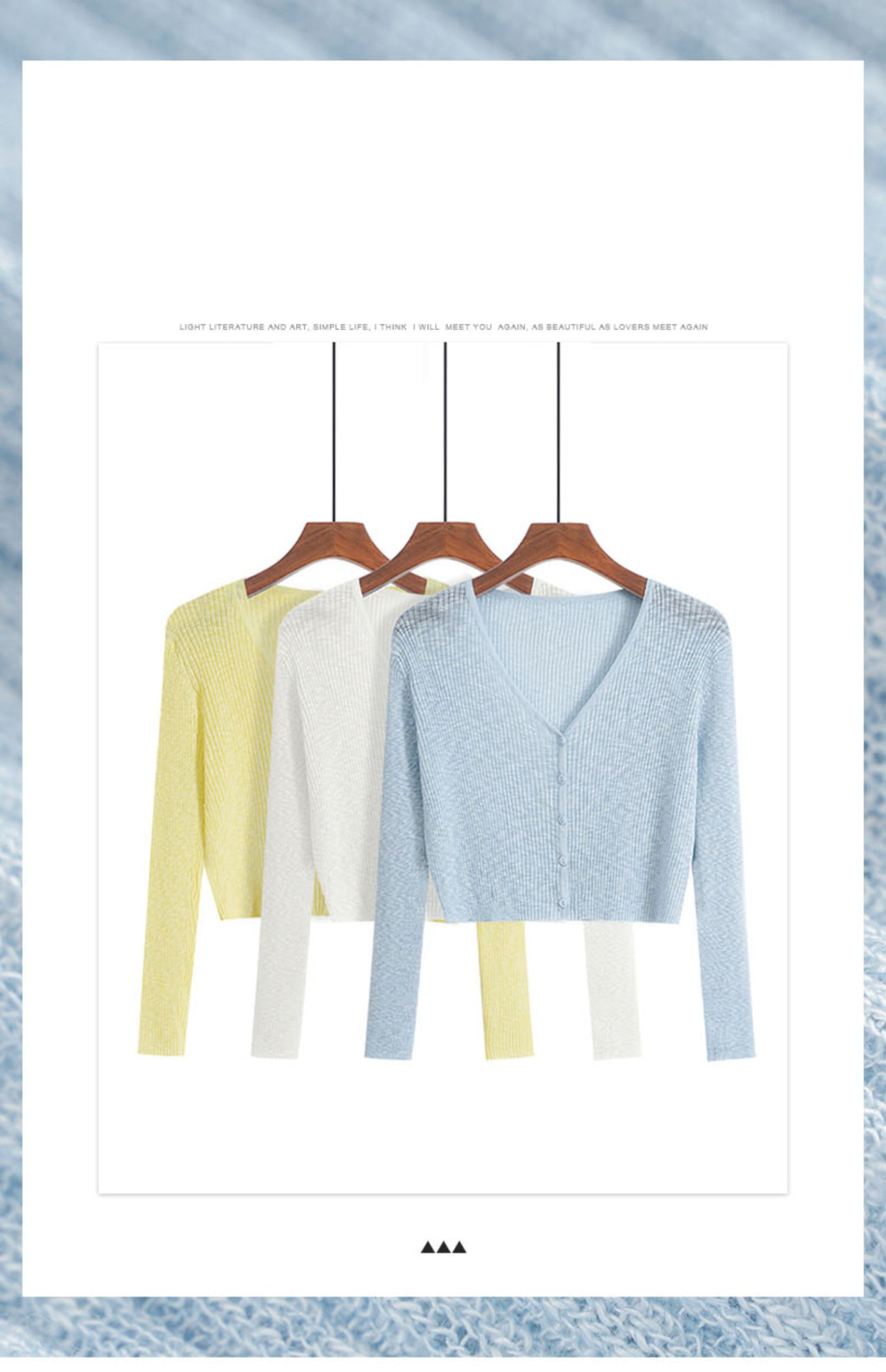 아이스 실크 니트 가디건 얇은 여성용 여름 자외선 차단제 스몰 블라우스 코트 V-넥 긴 소매 외부 짧은 에어컨 셔츠 탑