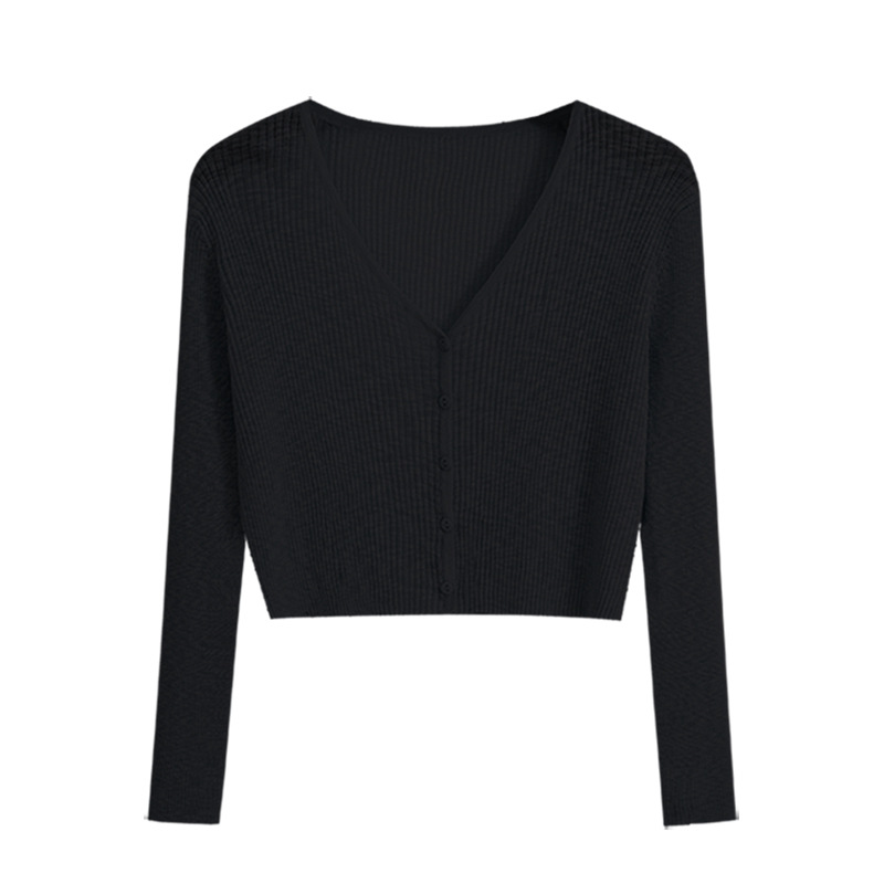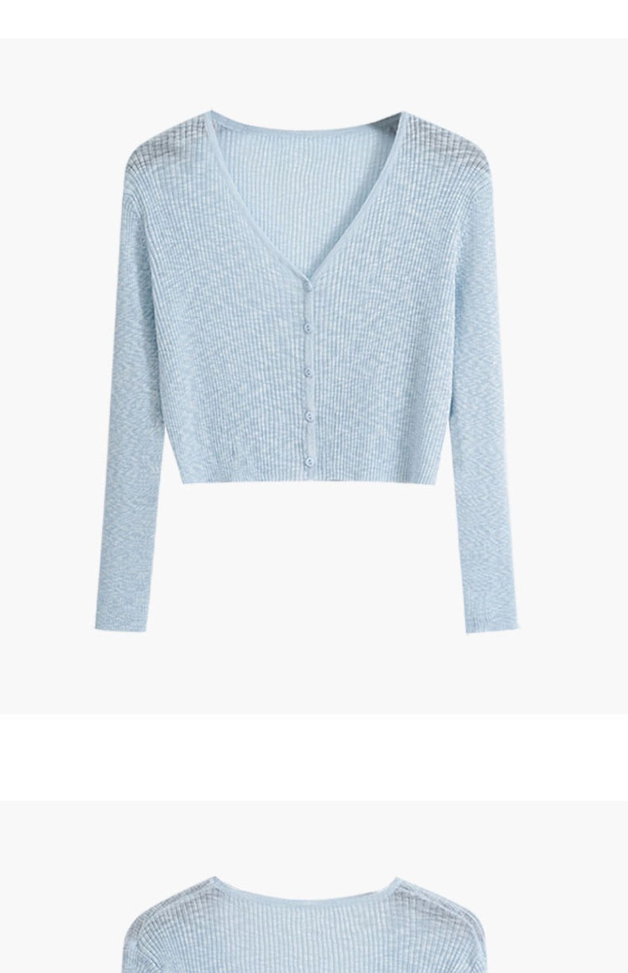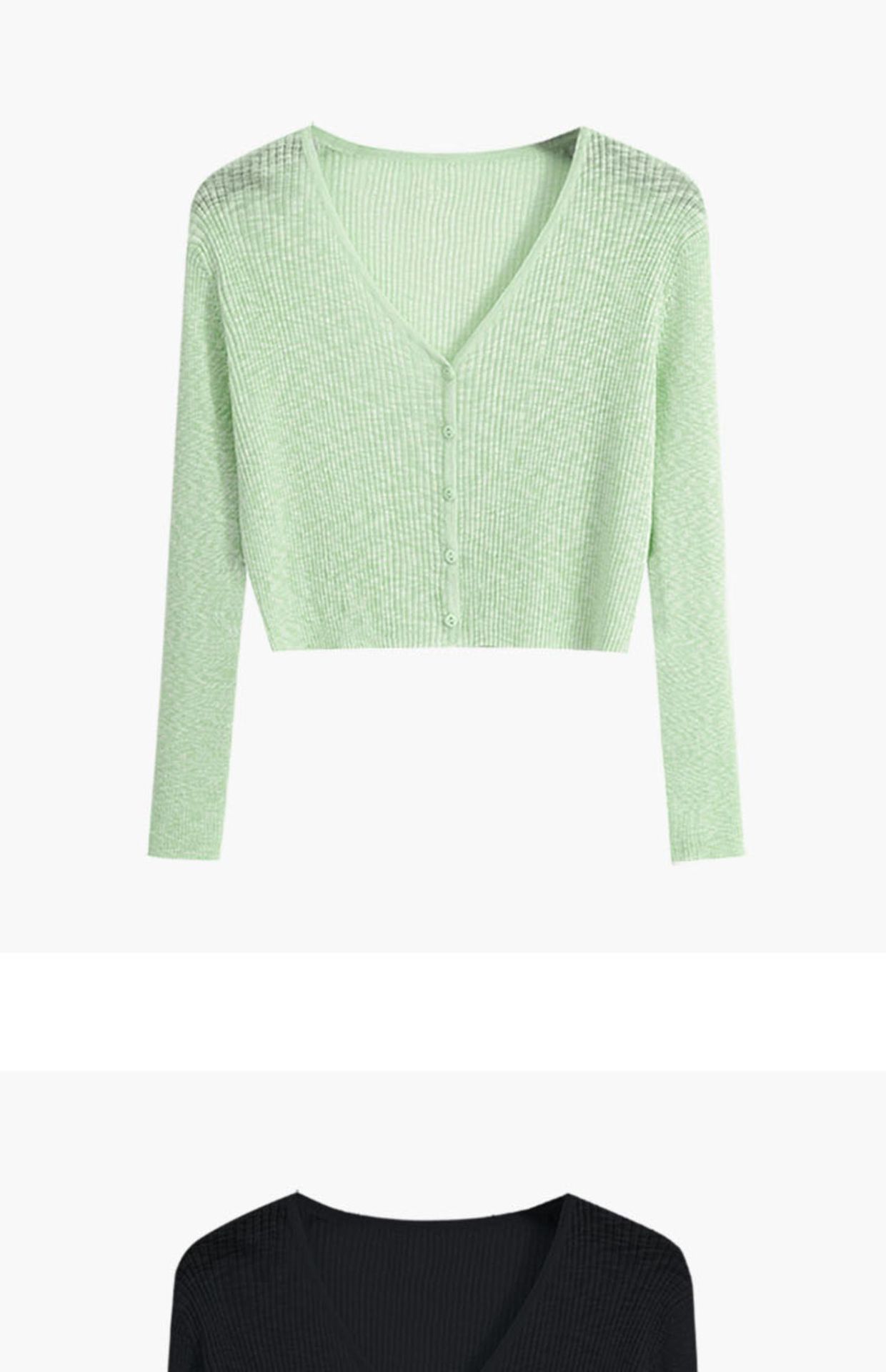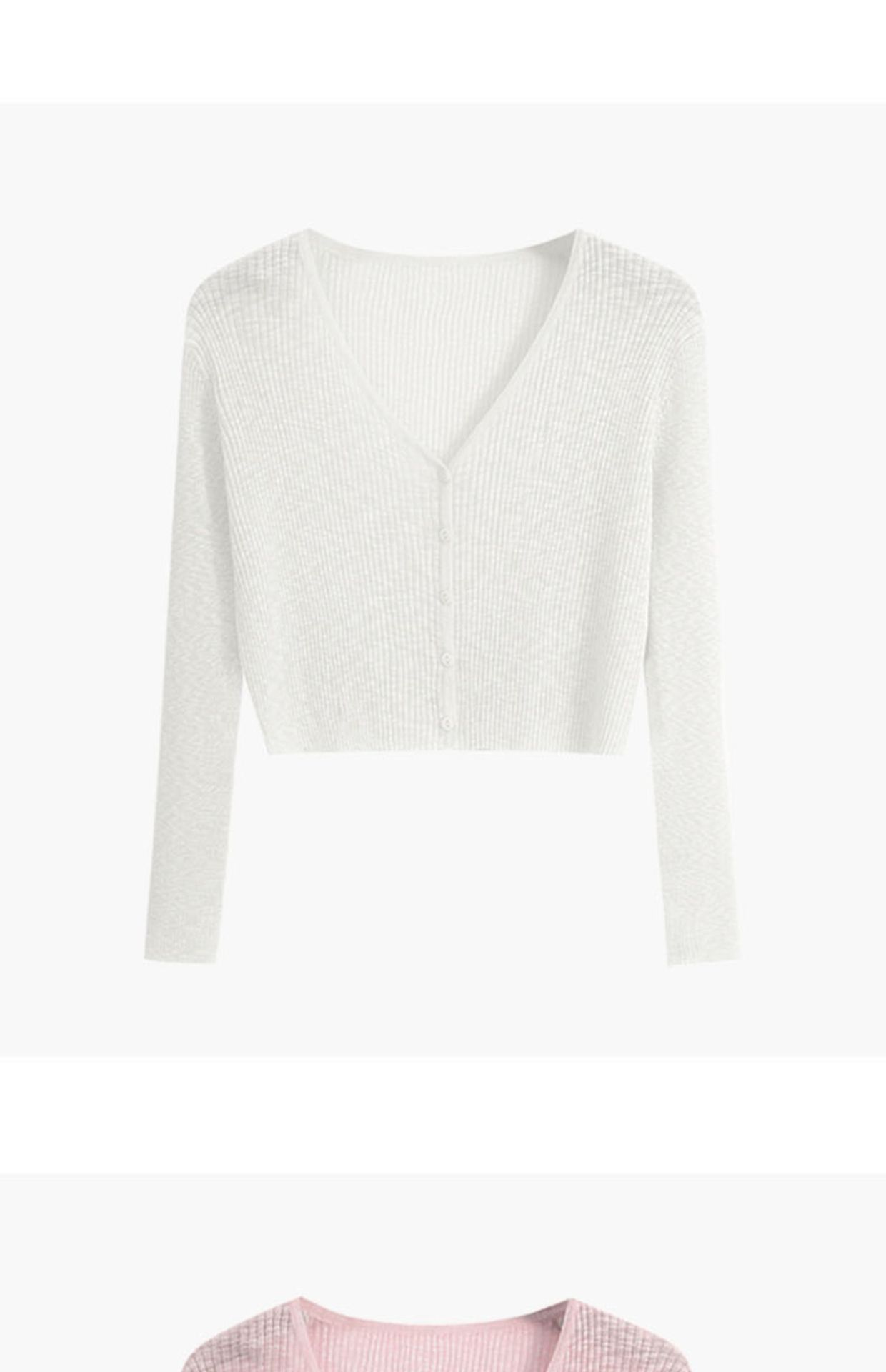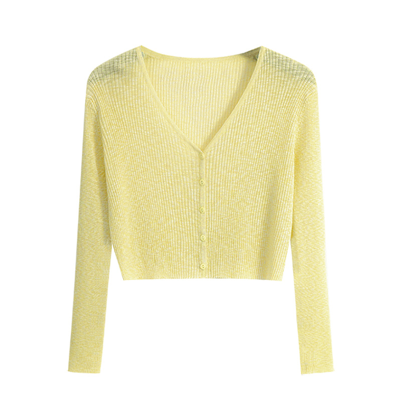 아이스 실크 니트 가디건 얇은 여성용 여름 자외선 차단제 스몰 블라우스 코트 V-넥 긴 소매 외부 짧은 에어컨 셔츠 탑