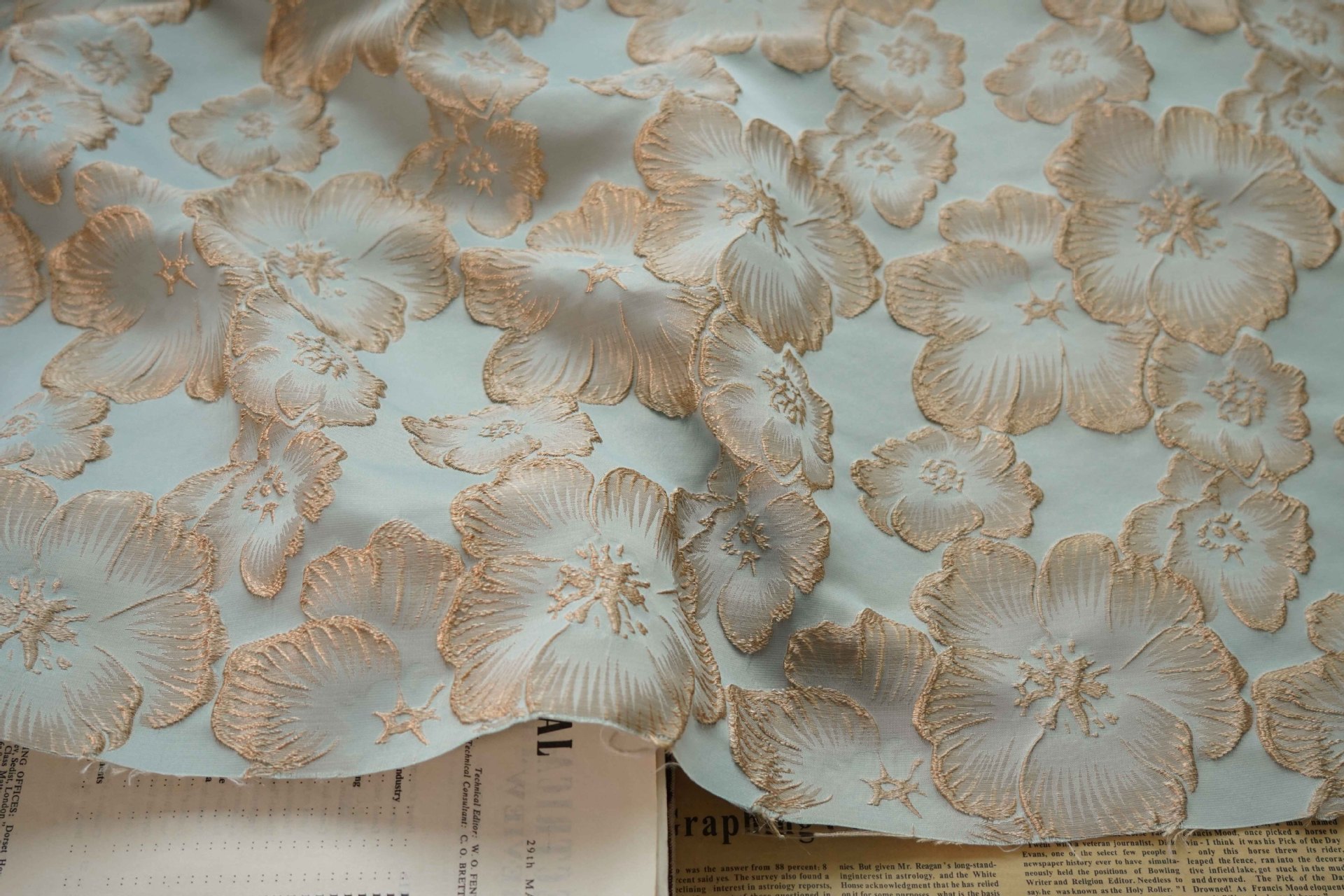 우아한 3 차원 오목 볼록 금박 꽃 원피스 패브릭 복고풍 봄과 가을 코트 여성 의류 수하물 의류 직물스토어 가기