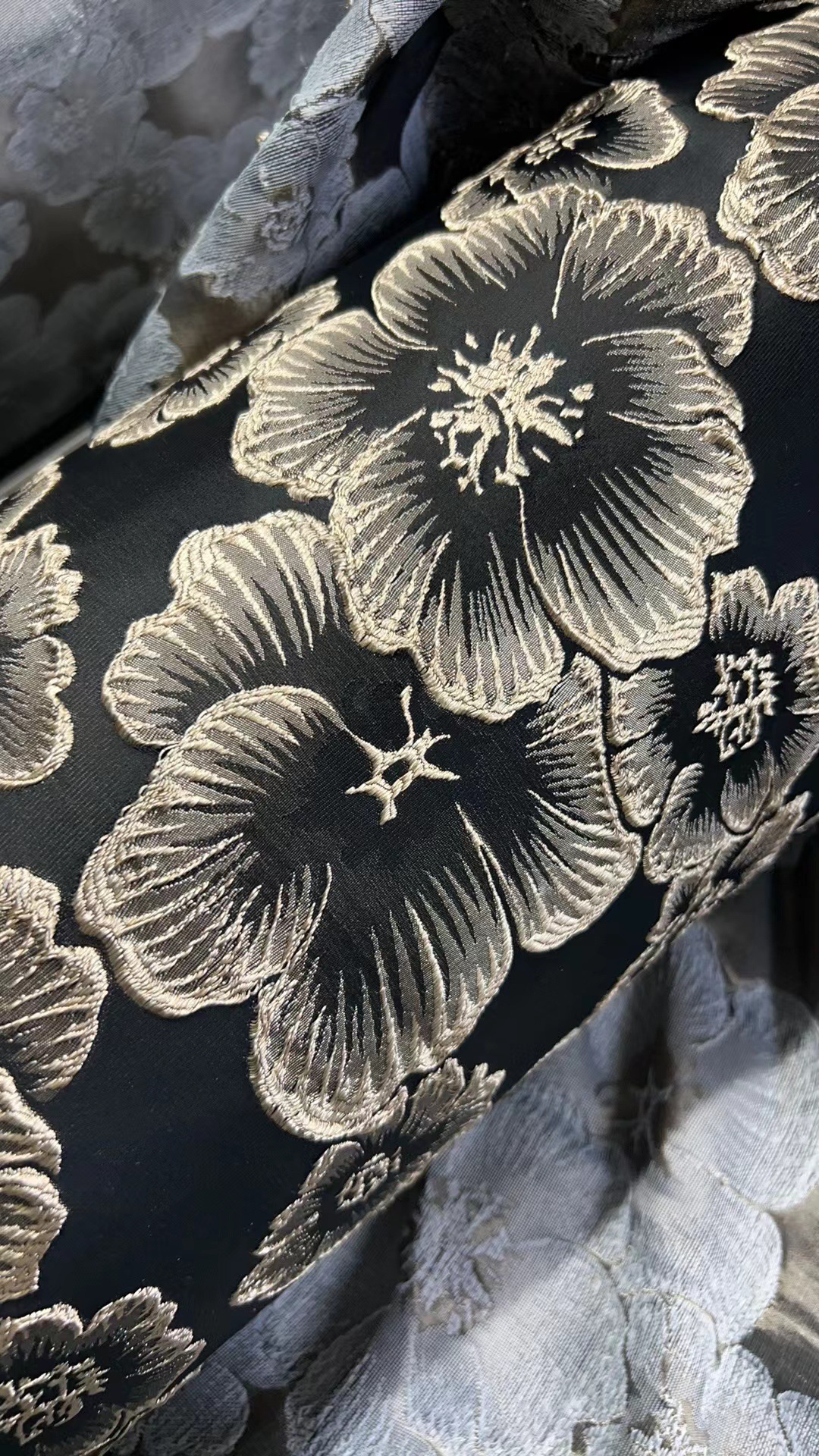 우아한 3 차원 오목 볼록 금박 꽃 원피스 패브릭 복고풍 봄과 가을 코트 여성 의류 수하물 의류 직물