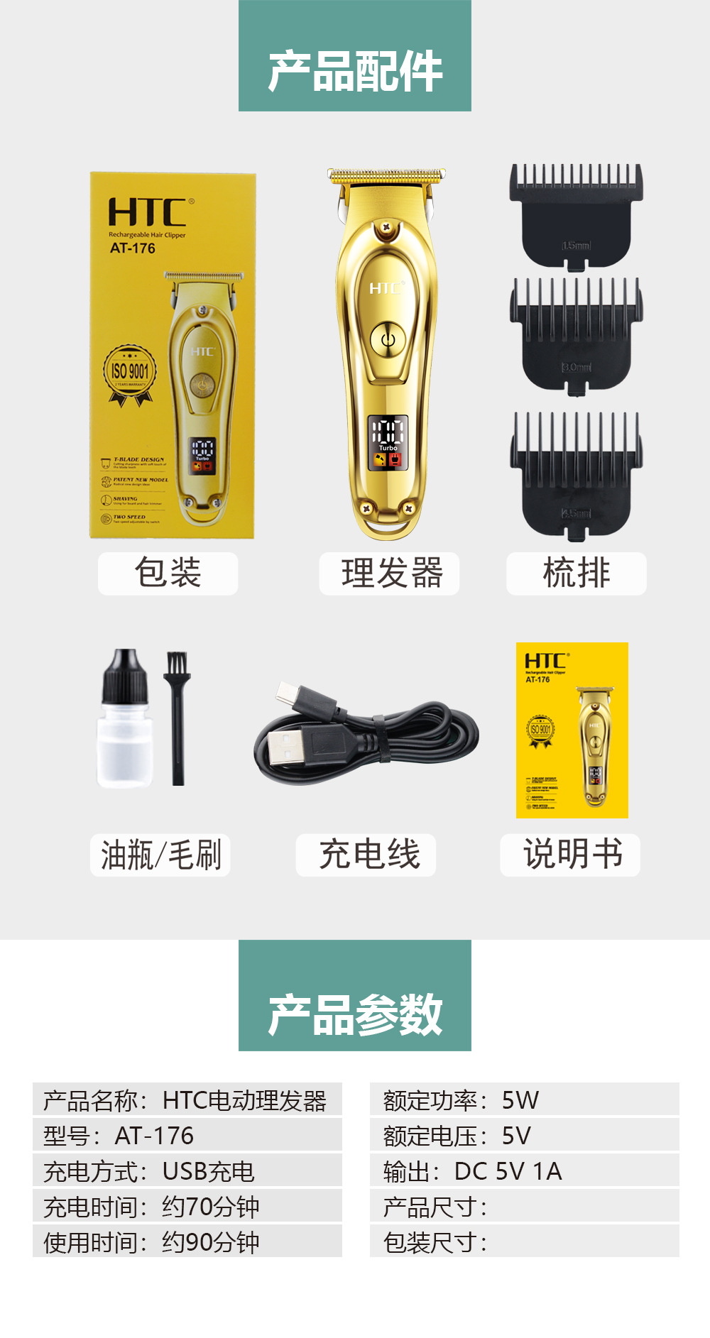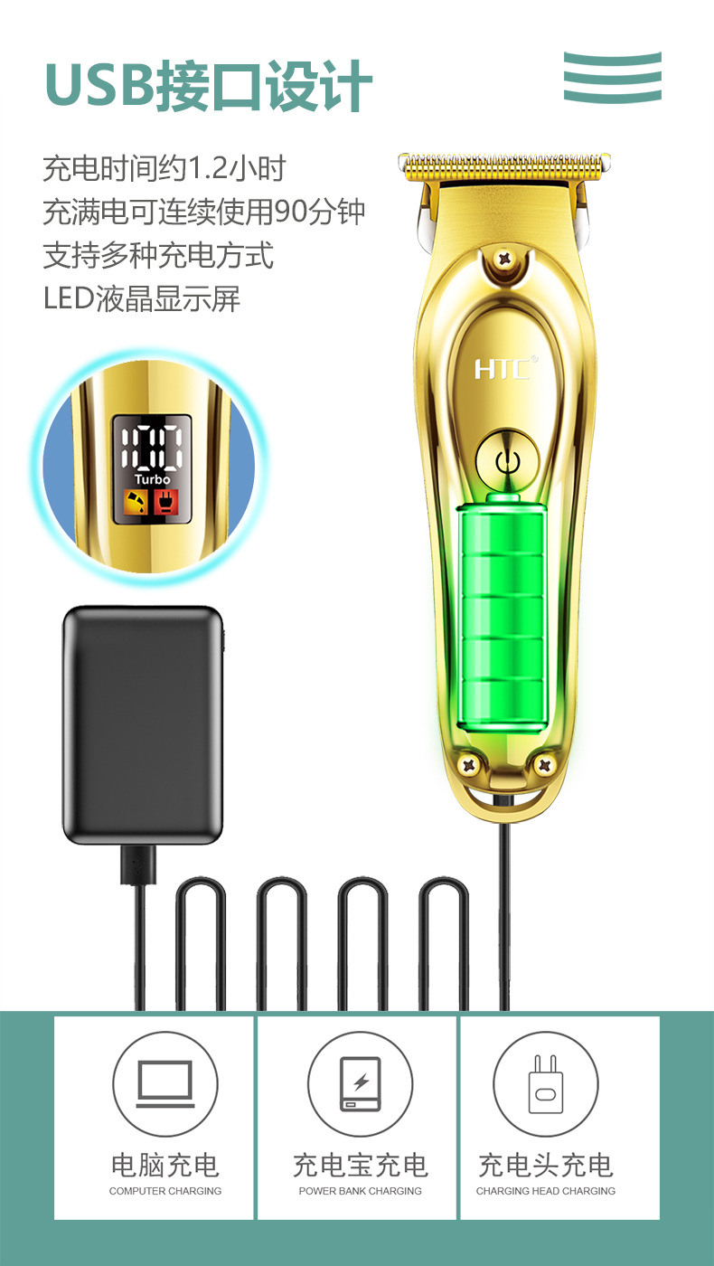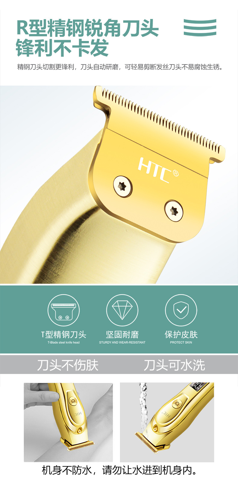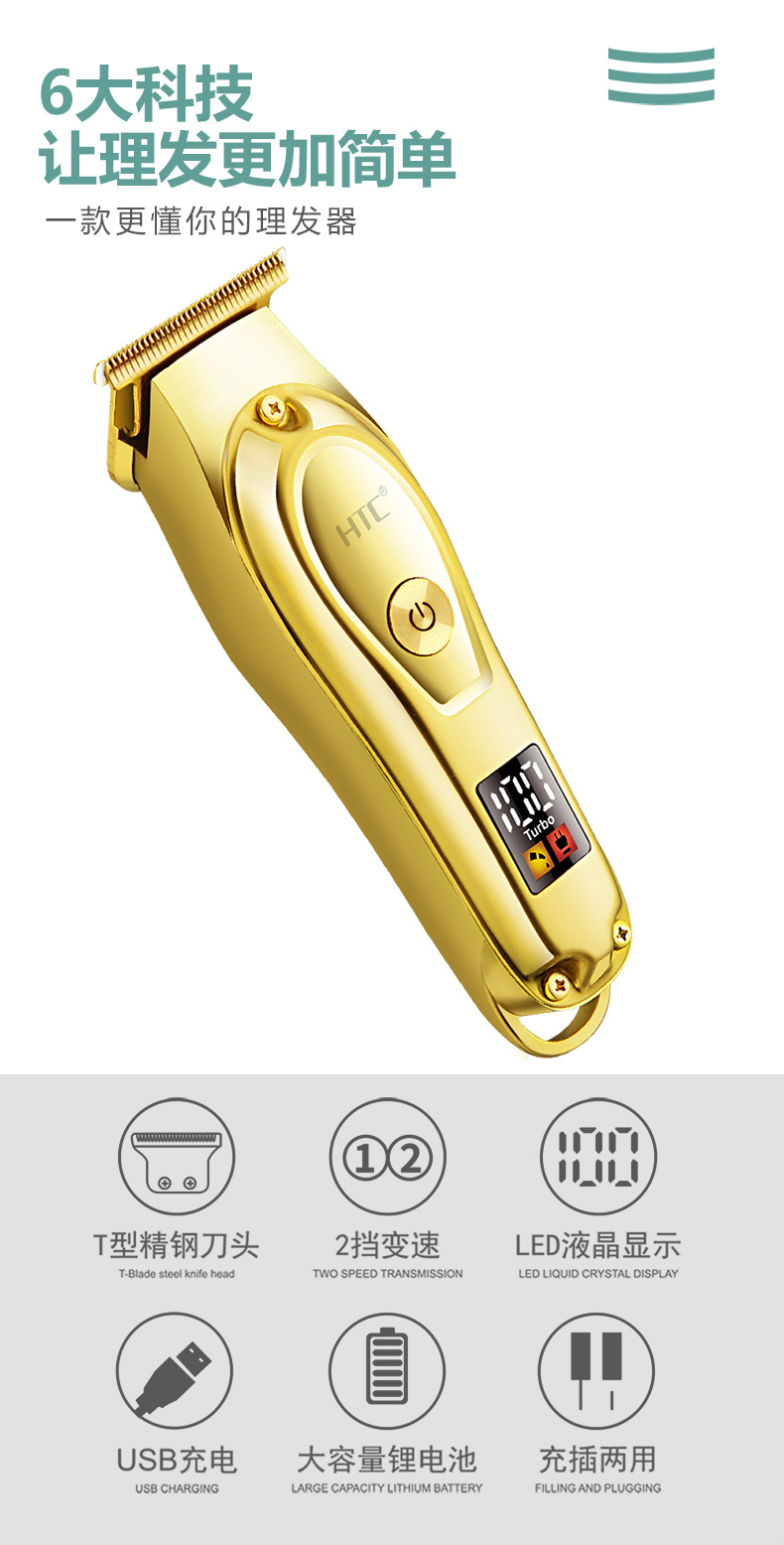 HTC 헤어 클리퍼 오일 헤드 조각 면도 헤어 클리퍼 가정용 헤어 살롱 면도 LCD 디지털 디스플레이 사이드 번 트리밍 전기 클리퍼