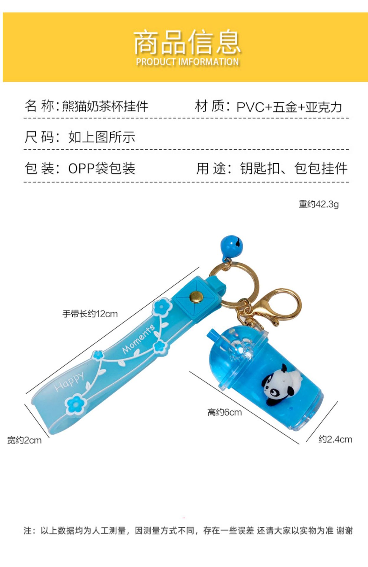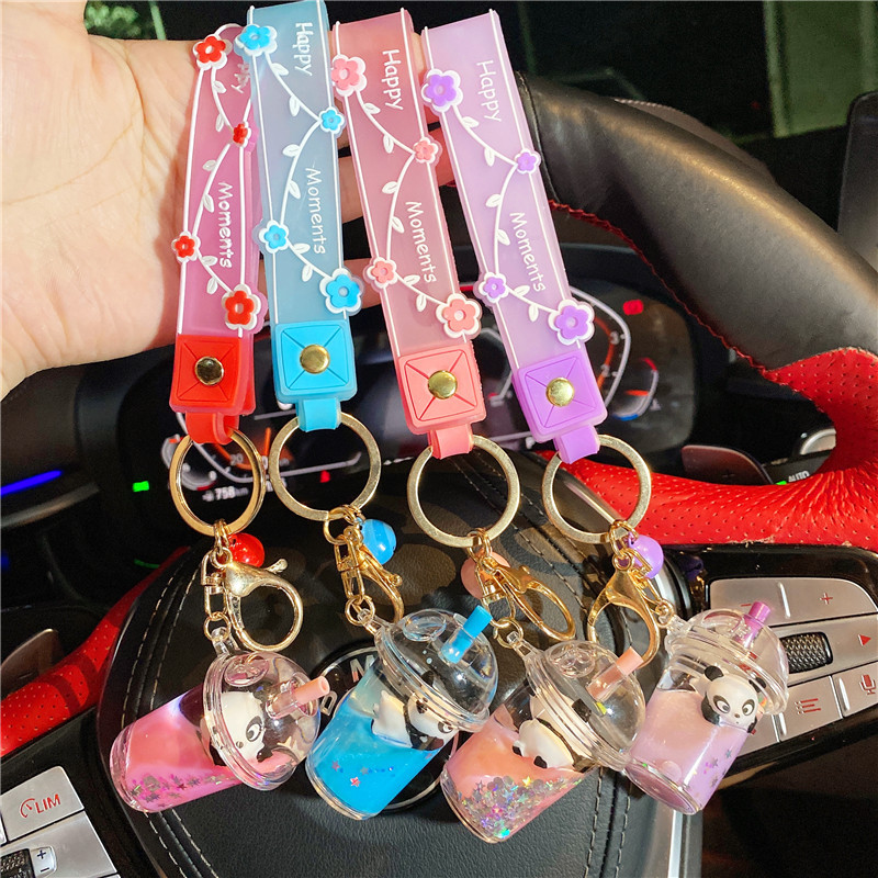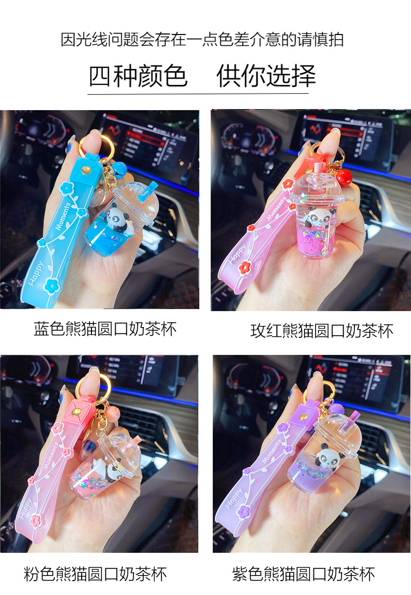 소녀의 마음에 창조적 인 인터넷 연예인 귀여운 팬더 기름 가득 우유 차 컵 떠 다니는 병 열쇠 고리 펜던트 quicksand 펜던트스토어 가기