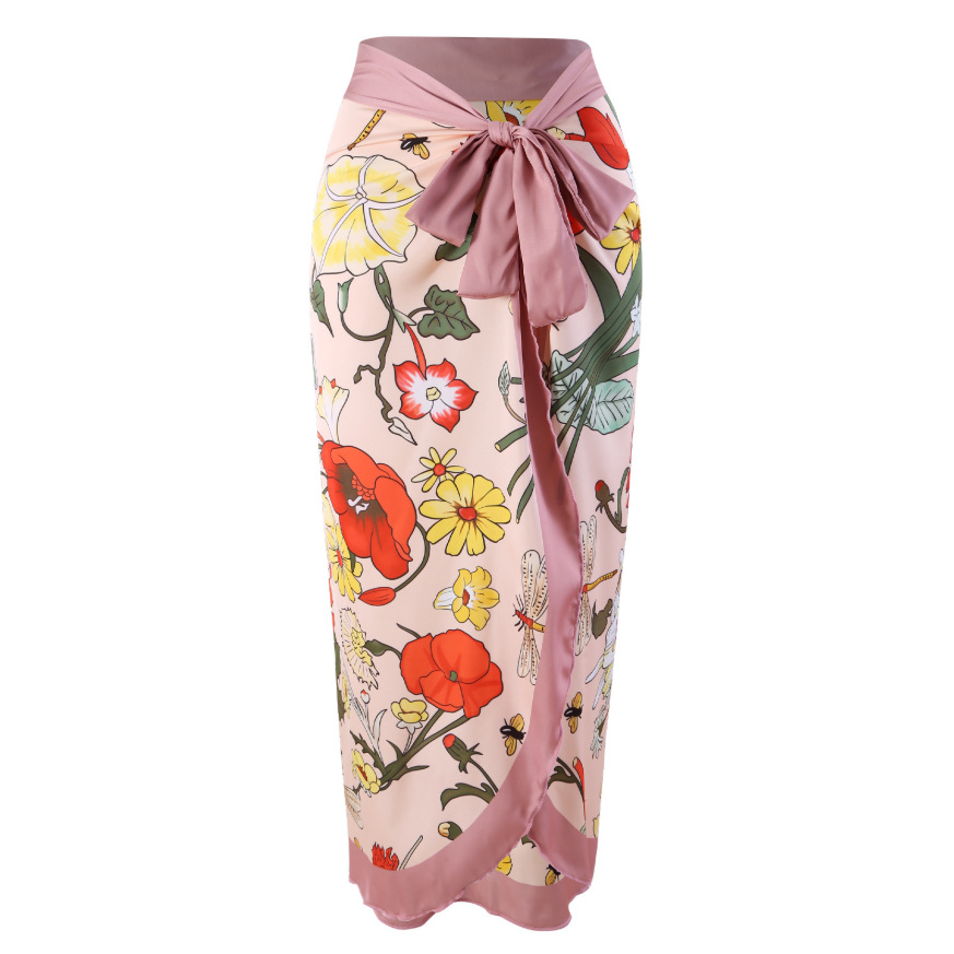 • Y118 핑크 레드 플라워 랩 스커트