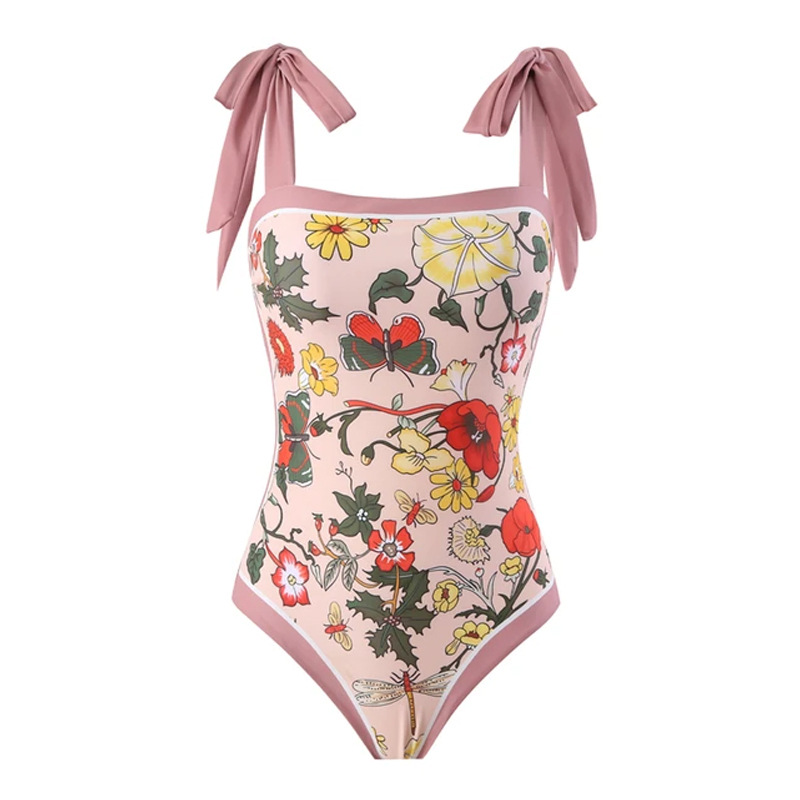2025爆款新款复古印花欧美法式分体女泳衣跨境度假比基尼swimsuit
