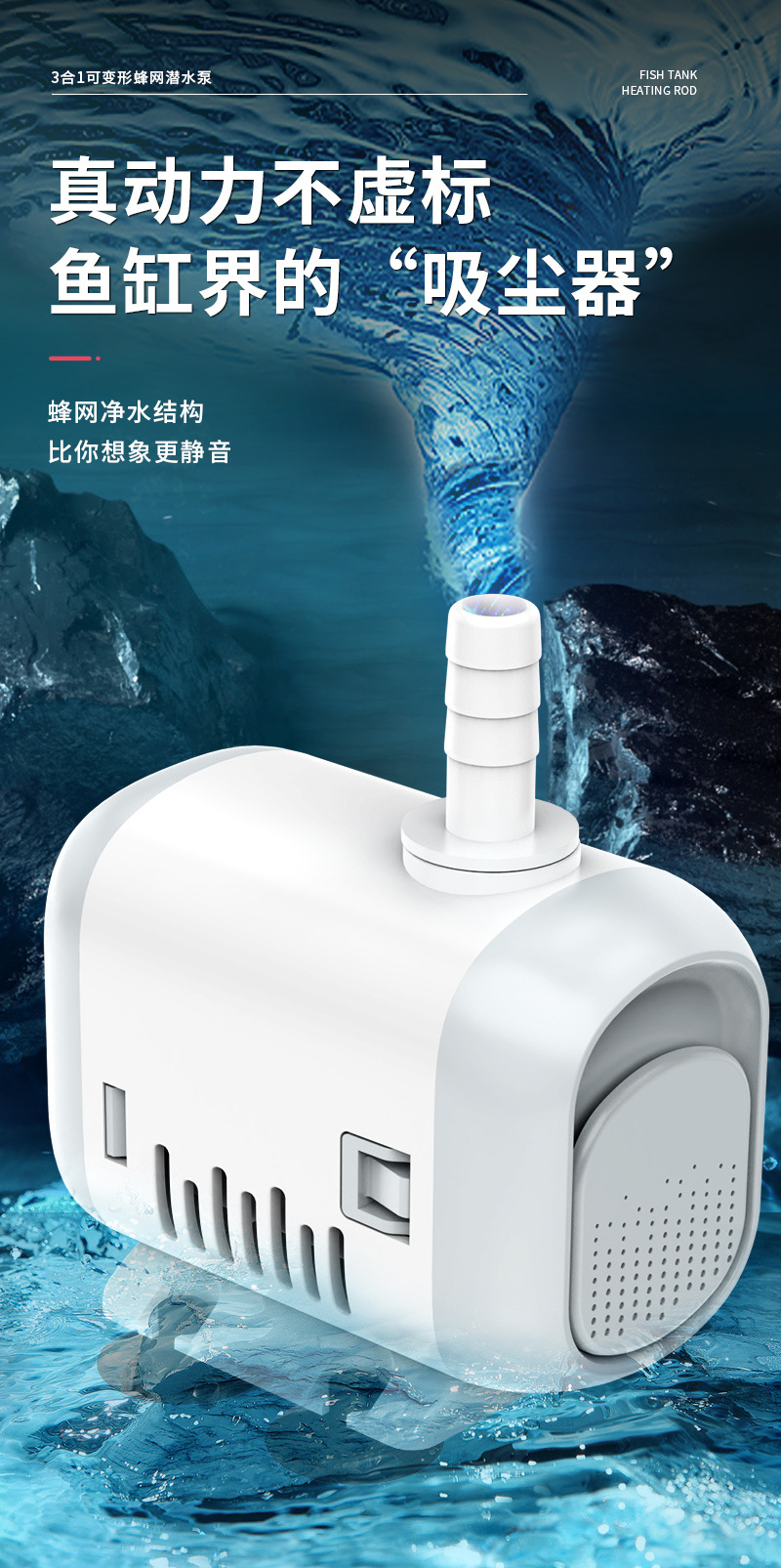 꿀벌 그물 잠수정 펌프 어항 측면 흡입 펌프 어항 흡입 펌프 소형 순환 펌프 침묵 물 변경 바닥 흡입 펌프