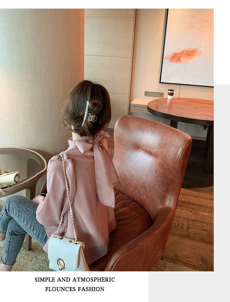 2025 봄 가을 신상 패션 달콤한 궁전 스타일 랜턴 퍼프 소매 리본 셔츠 여성 요정 쉬폰 탑