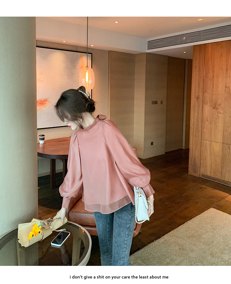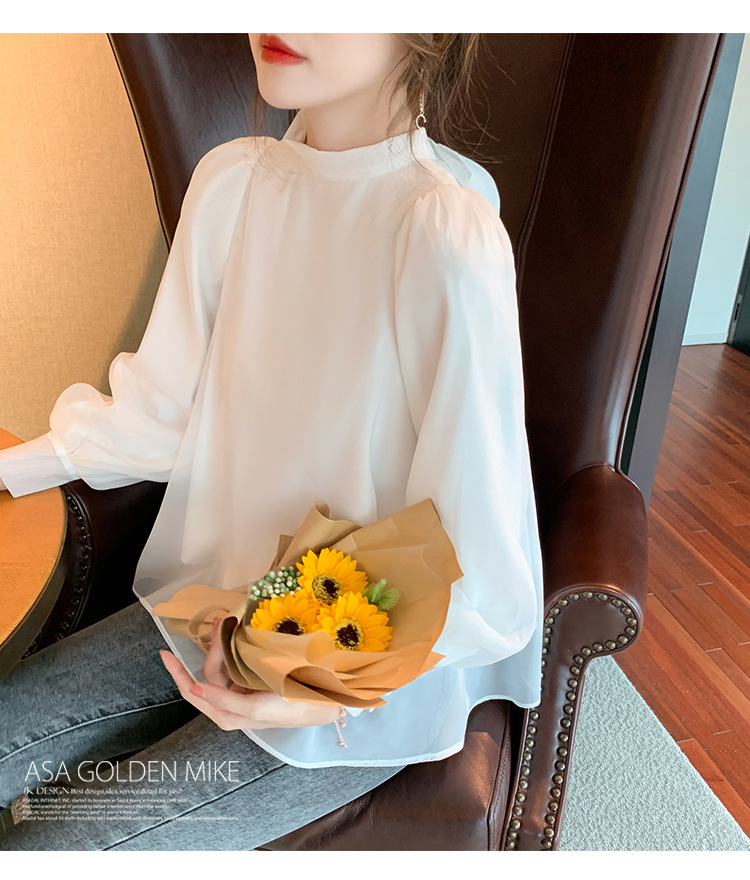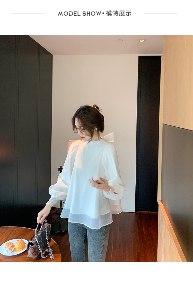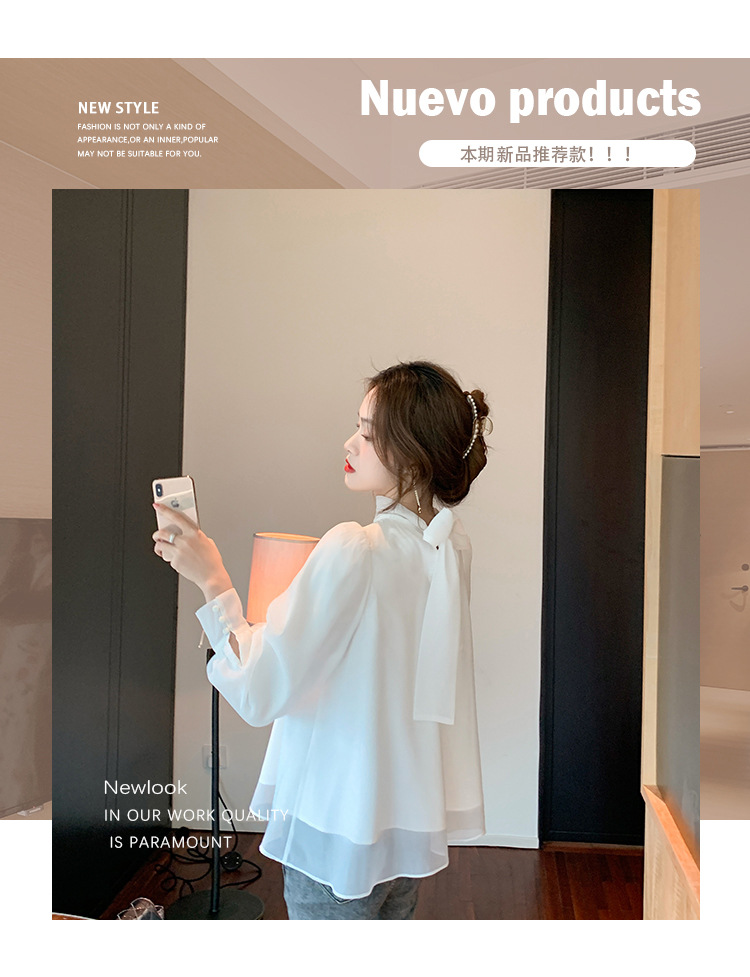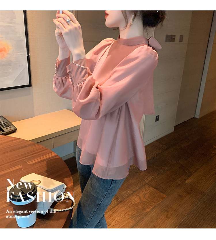 2025 봄 가을 신상 패션 달콤한 궁전 스타일 랜턴 퍼프 소매 리본 셔츠 여성 요정 쉬폰 탑스토어 가기