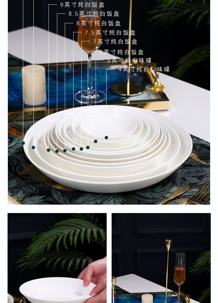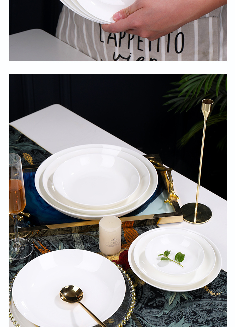 Jingdezhen 본 중국 식기 세라믹 가정용 호텔 테이블 접시 수프 접시 디스크 창조적 인 접시 가정 순백밥 접시
