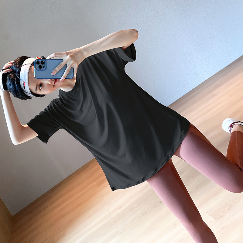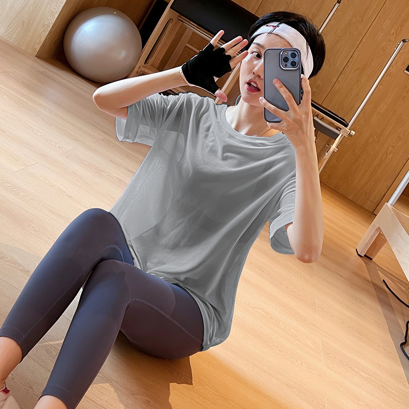 2025 거즈 통기성 빠른 건조 피트니스 세트 느슨한 러닝 반팔 블라우스 슬리밍 요가 탑스토어 가기