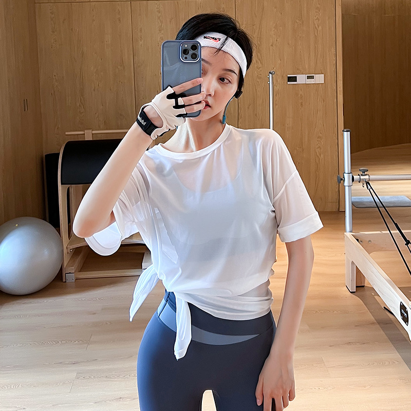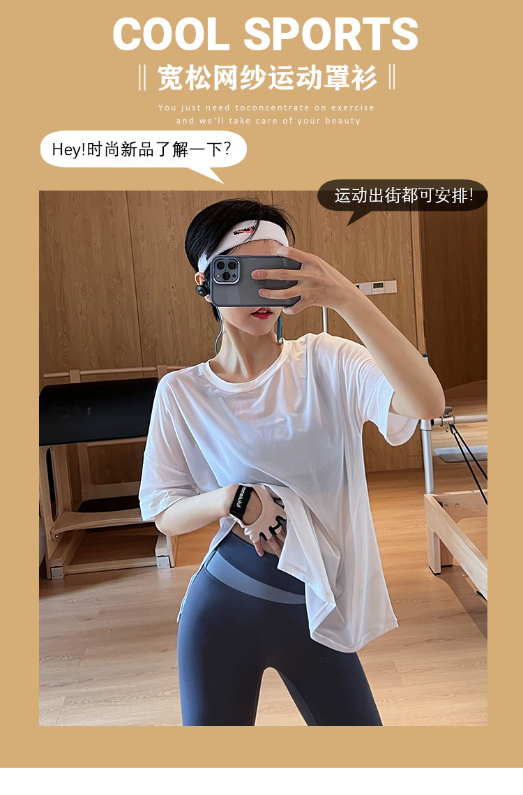 2025 거즈 통기성 빠른 건조 피트니스 세트 느슨한 러닝 반팔 블라우스 슬리밍 요가 탑