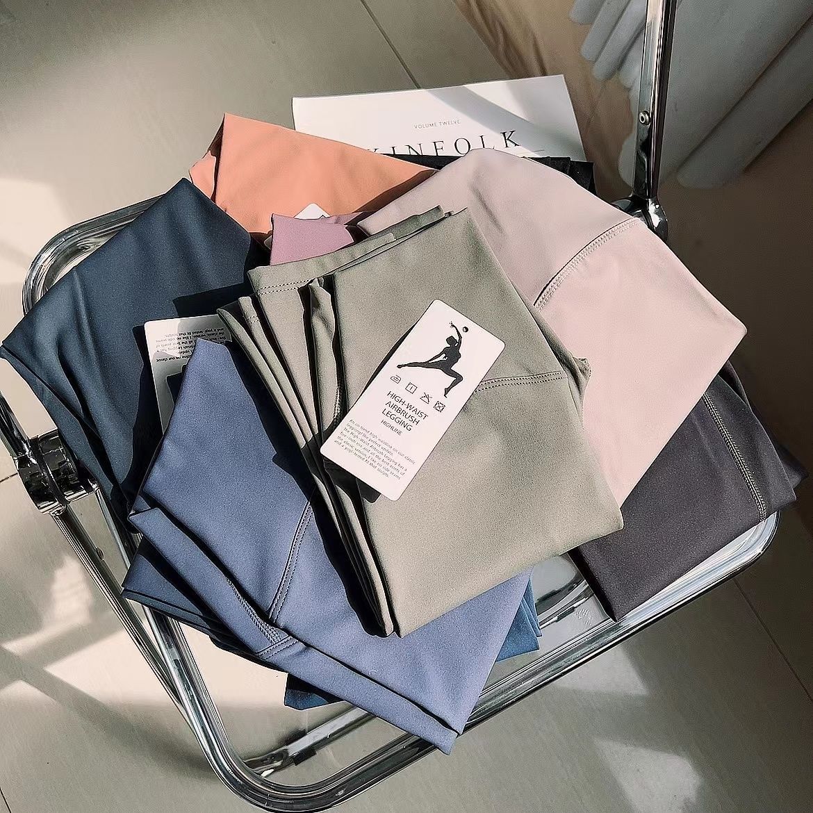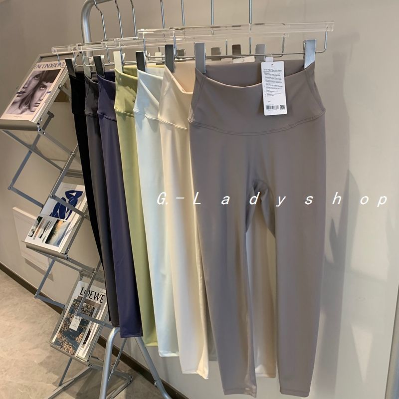 루루 크림 컬러 알몸 바지 하이 웨이스트 엉덩이 리프팅 당혹 라인 요가 바지 속건 스포츠베이스 발목 길이 바지스토어 가기