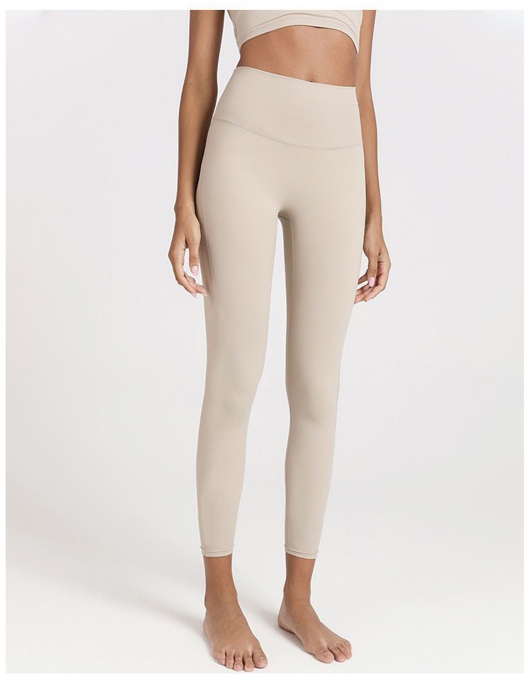 루루 크림 컬러 알몸 바지 하이 웨이스트 엉덩이 리프팅 당혹 라인 요가 바지 속건 스포츠베이스 발목 길이 바지