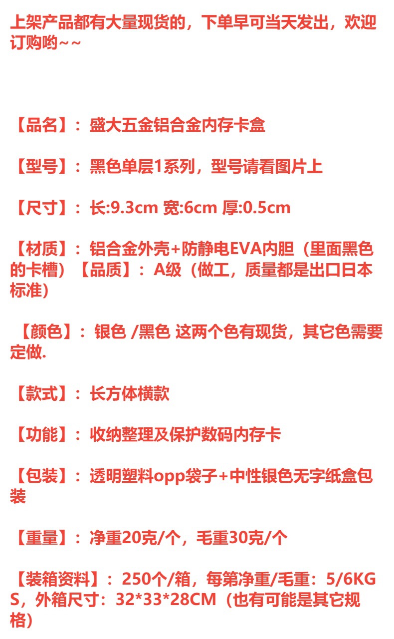 블랙 싱글 레이어 알루미늄 sd tf 마이크로 나노 SIM 카드 휴대 전화 카메라 메모리 카드 보관 가방 상자스토어 가기