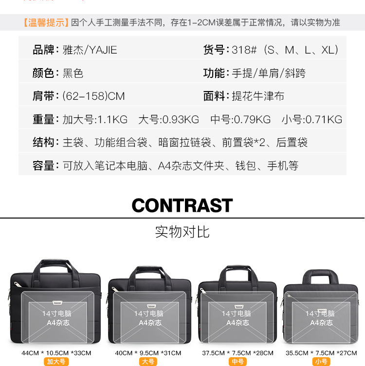 남자의 비즈니스 휴대용 옥스포드 천 서류 가방 대용량 컴퓨터 가방 어깨 크로스 바디 파일 가방 공식 가방 인쇄 로고스토어 가기