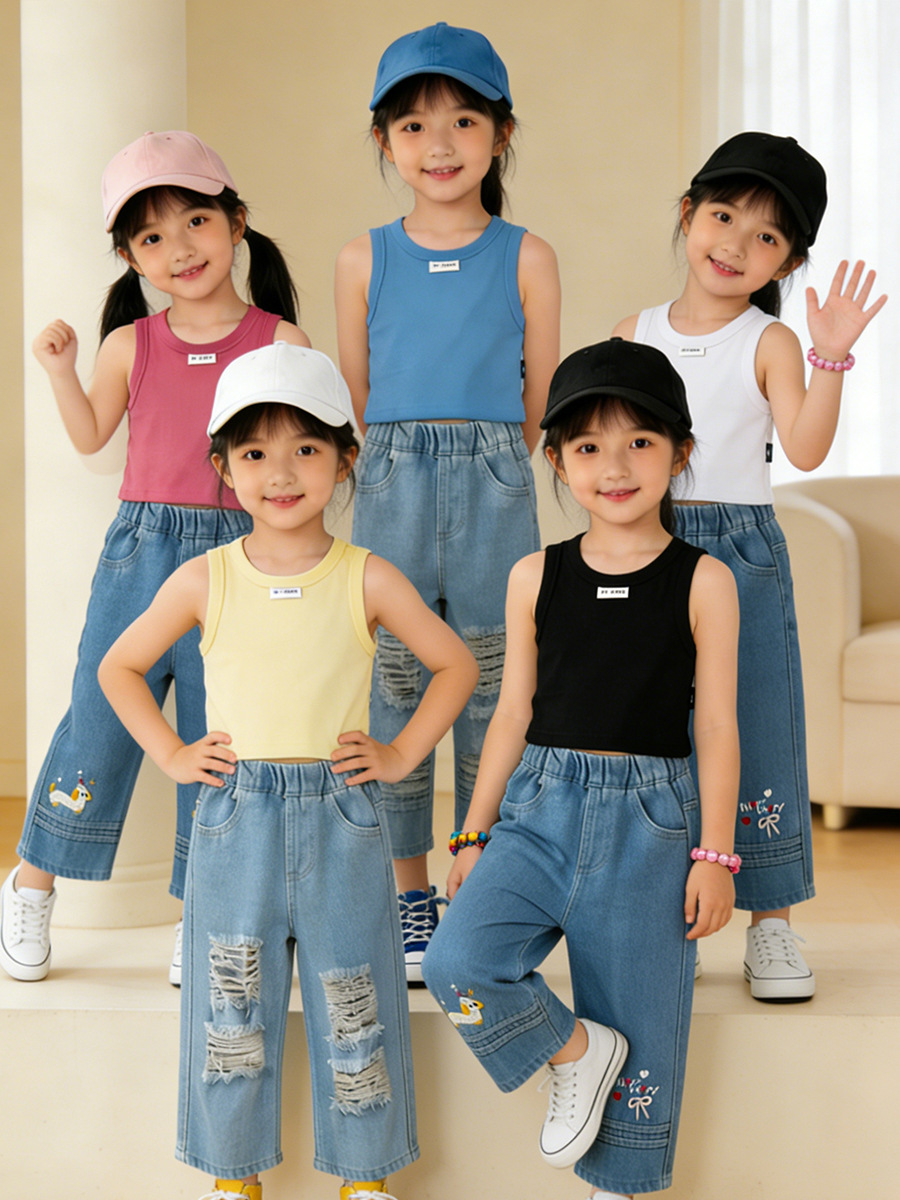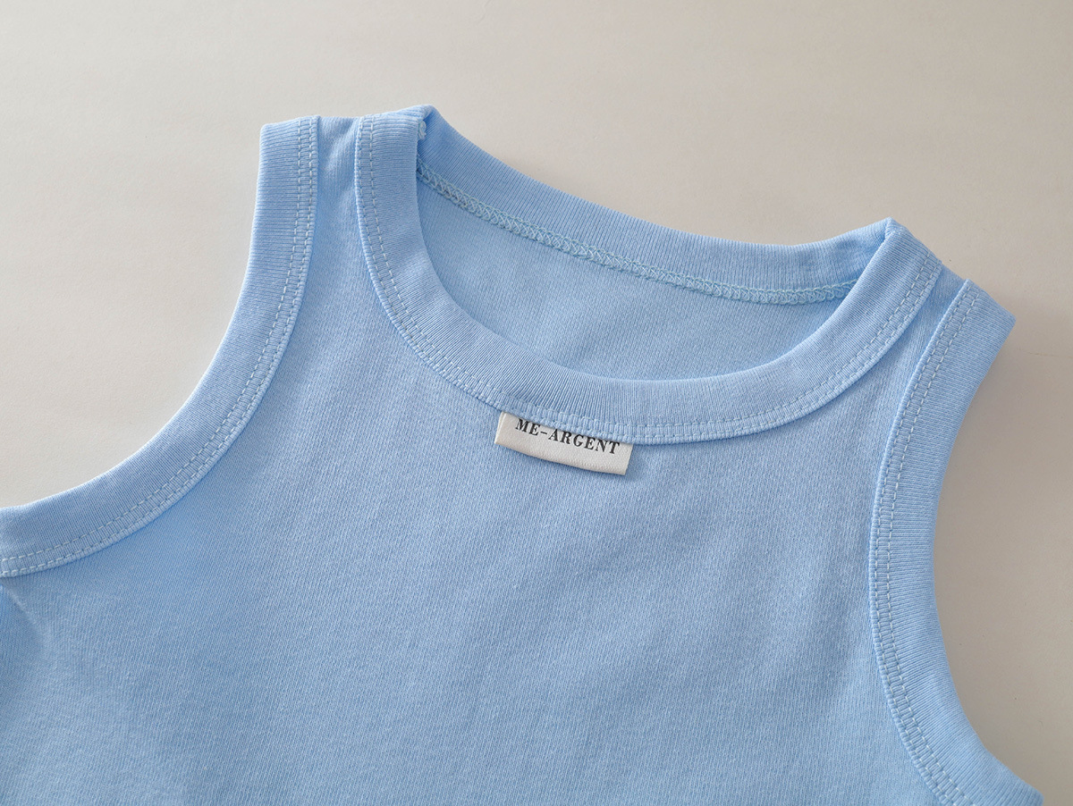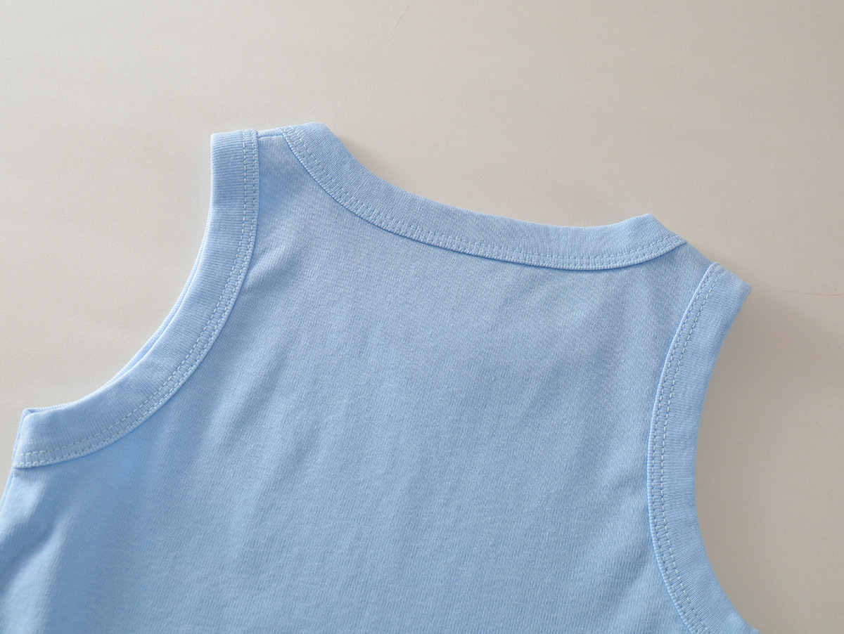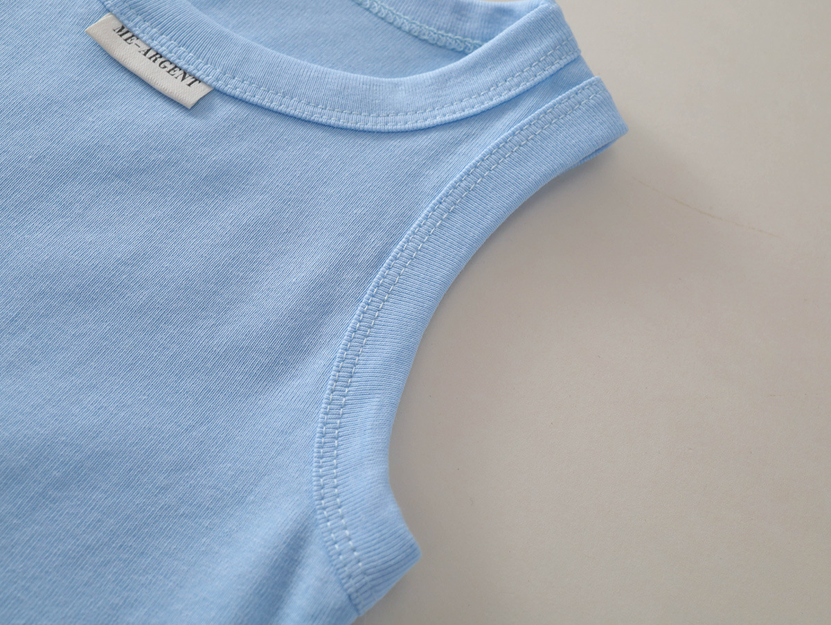 MDD 아동용 조끼, 유아 남녀 아동용, 한국 스타일, 단색 라운드넥 민소매 상의, 다용도, 외출복으로도 착용 가능스토어 가기