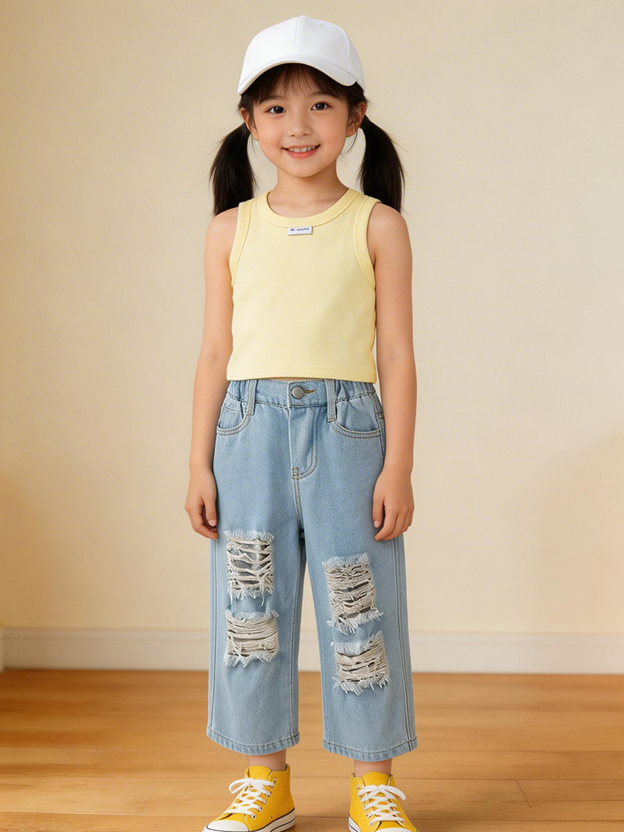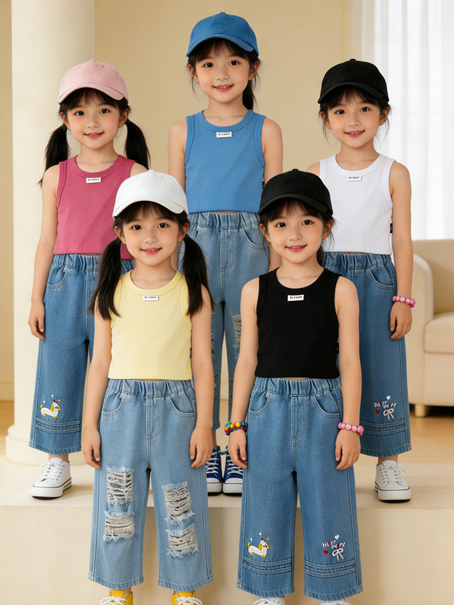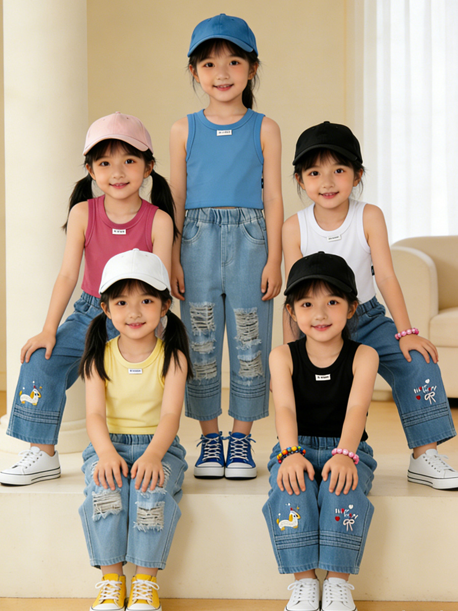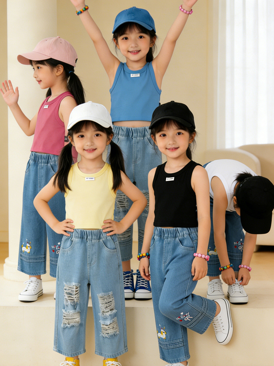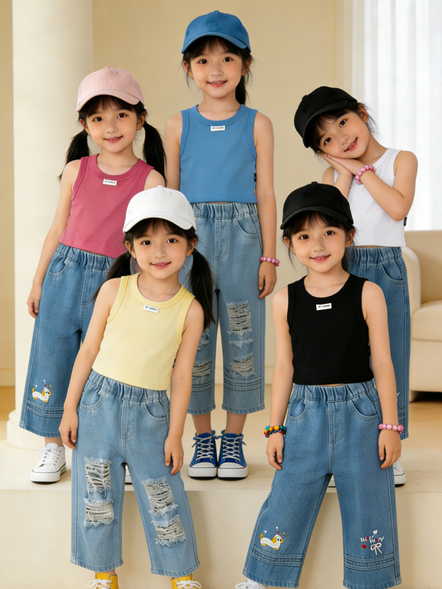 MDD 아동용 조끼, 유아 남녀 아동용, 한국 스타일, 단색 라운드넥 민소매 상의, 다용도, 외출복으로도 착용 가능스토어 가기