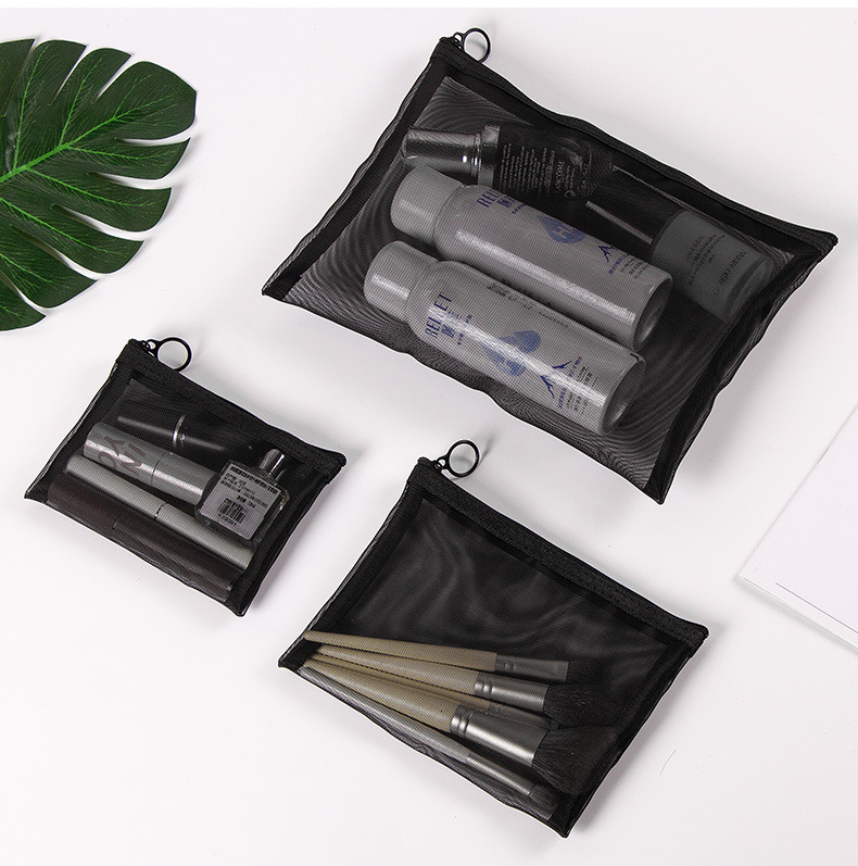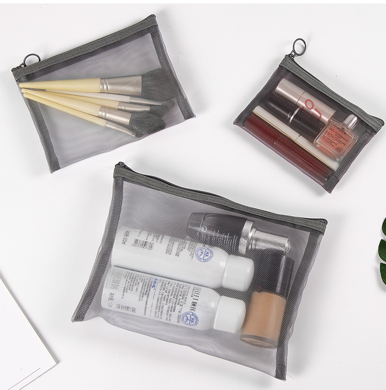 메쉬 화장품 보관 가방 투명 화장품 가방 휴대용 여행 3 피스 세면도구 가방 대용량 지퍼 메쉬 가방