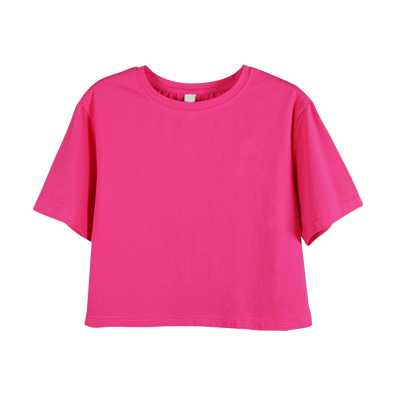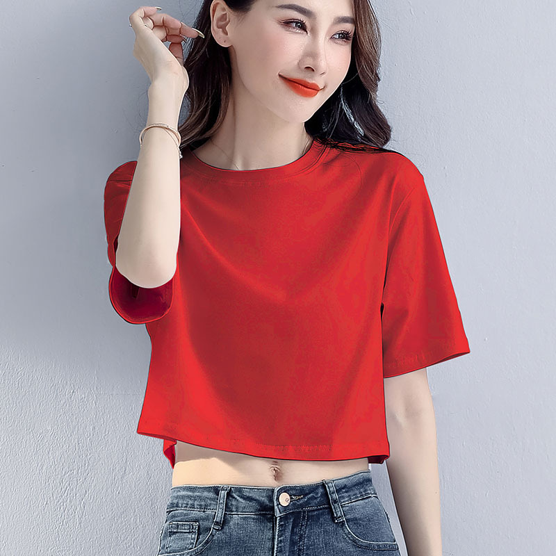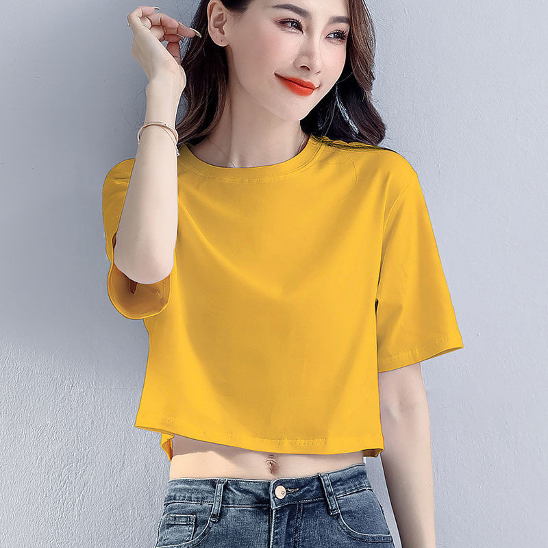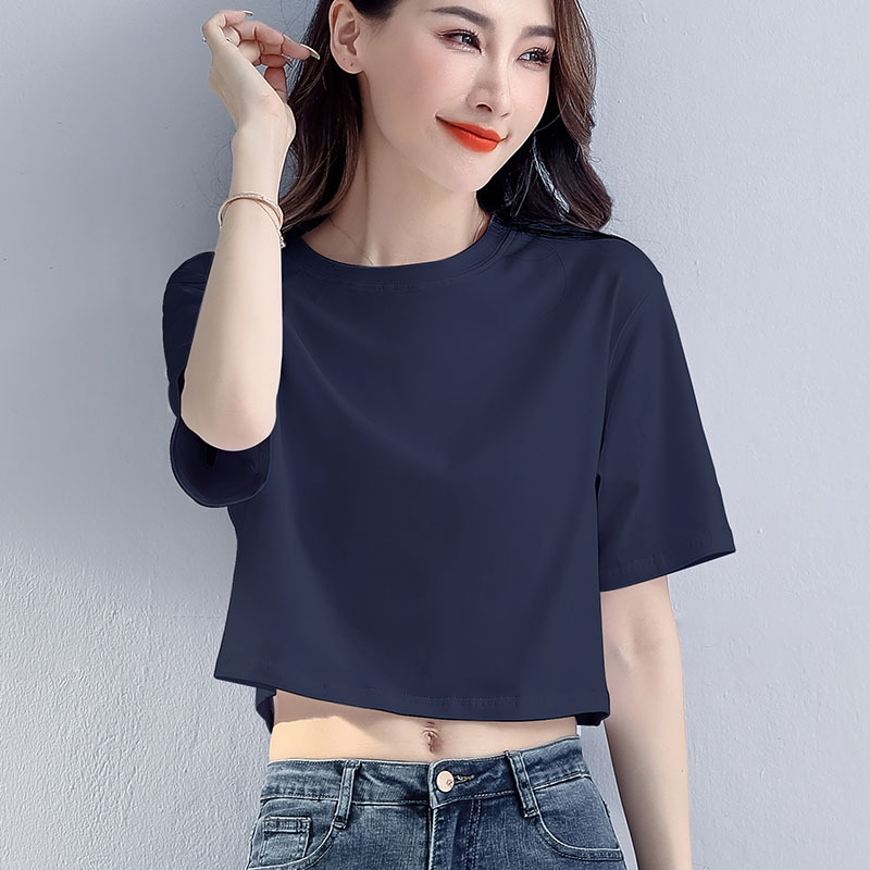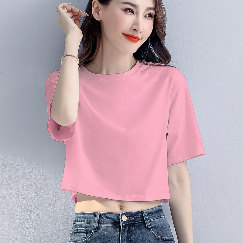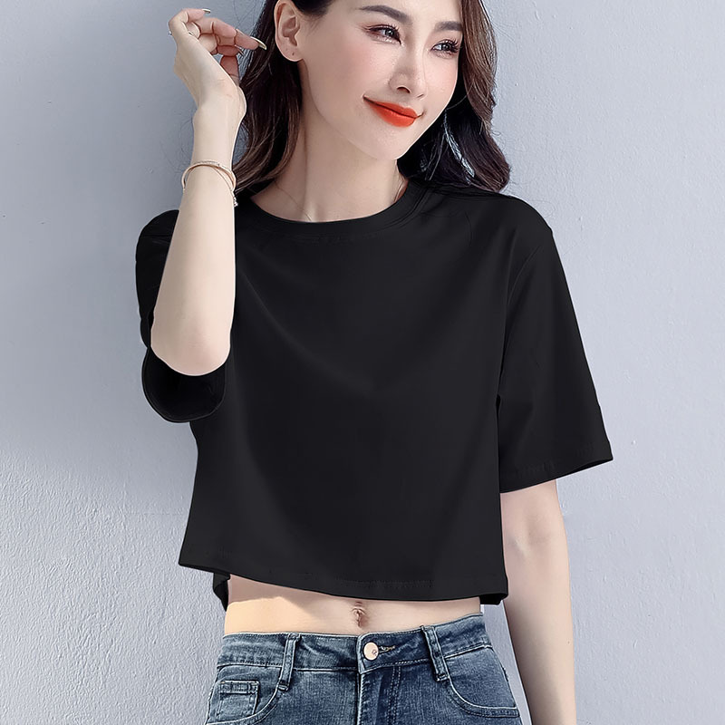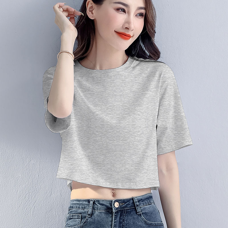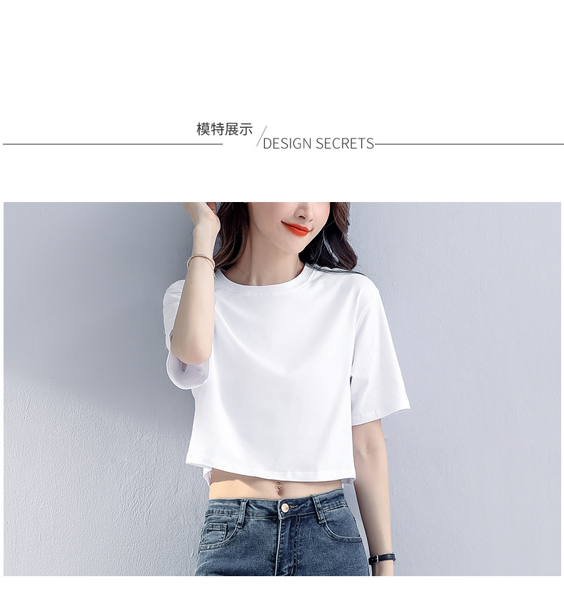여름 여성용 루즈한 배꼽 노출 반팔 티셔츠, 순면 하이웨이스트 배꼽 노출 여성용 반팔 흰색 티셔츠 탑스토어 가기