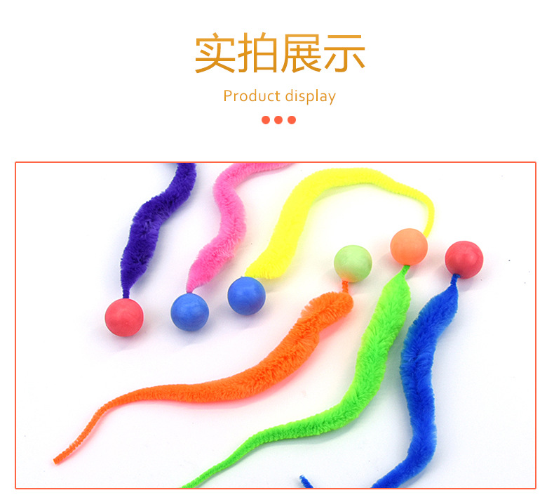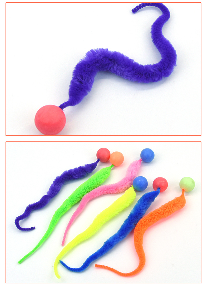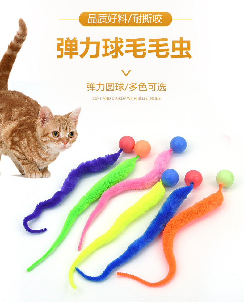 아마존 새로운 애완 동물 고양이 장난감 단색 탄성 공 애벌레 재미있는 고양이 스틱 고양이 대화 형 장난감 용품