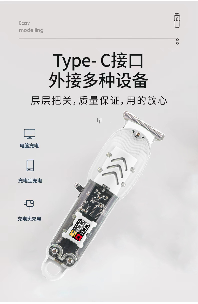새로운 크로스 보더 전기 헤어 클리퍼 오일 헤어 클리퍼 투명 LCD 전기 클리퍼 USB 전문 전기 클리퍼 미용실