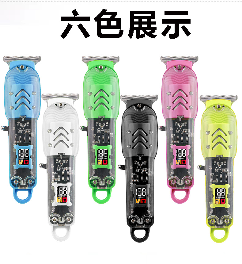 새로운 크로스 보더 전기 헤어 클리퍼 오일 헤어 클리퍼 투명 LCD 전기 클리퍼 USB 전문 전기 클리퍼 미용실스토어 가기