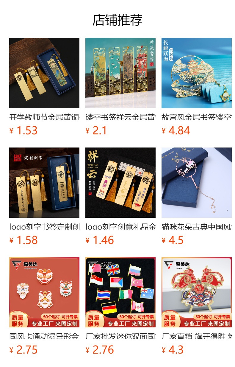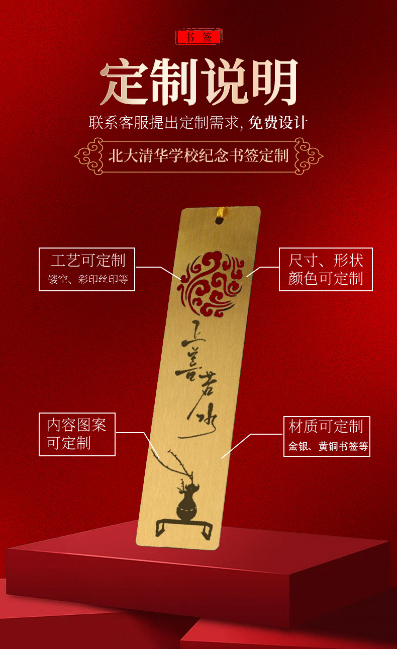 로고 레터링 북마크 맞춤형 창조적 인 선물 금속 황동 북마크 고전적인 중국 스타일 맞춤형 학생스토어 가기