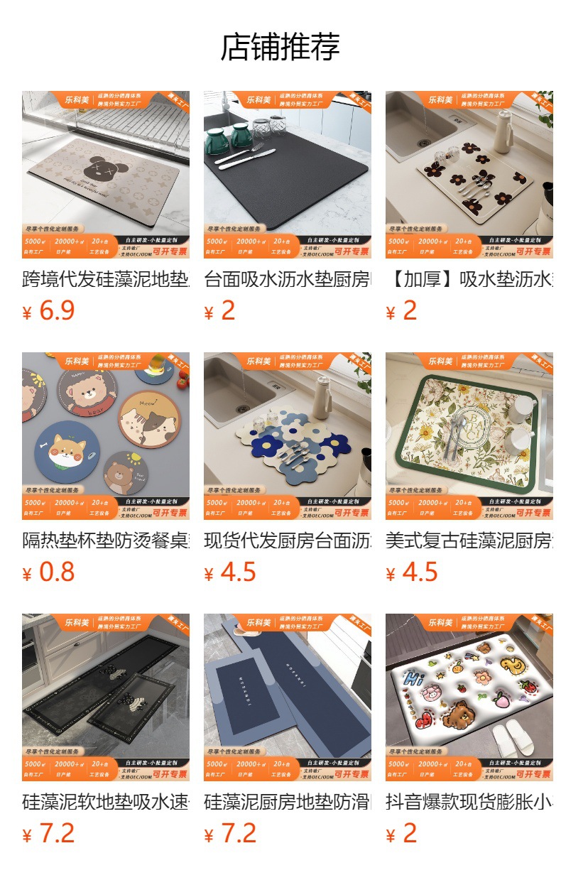 주방 부드러운 바닥 매트 맞춤형 흡수성 규조 진흙 기술 천 내유성 가정용 미끄럼 방지 발 매트 먼지 방지 방수 스크럽스토어 가기