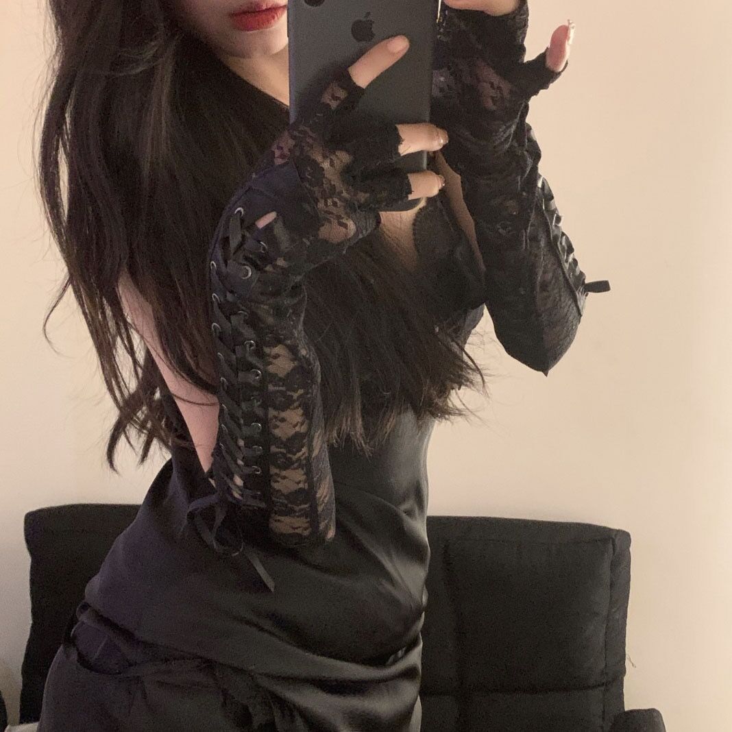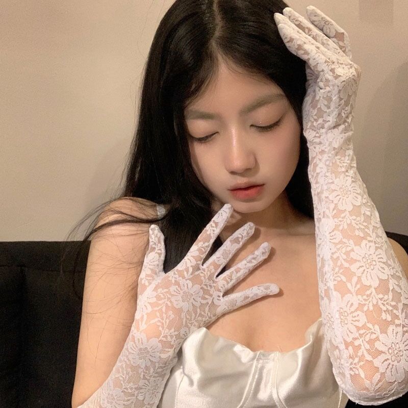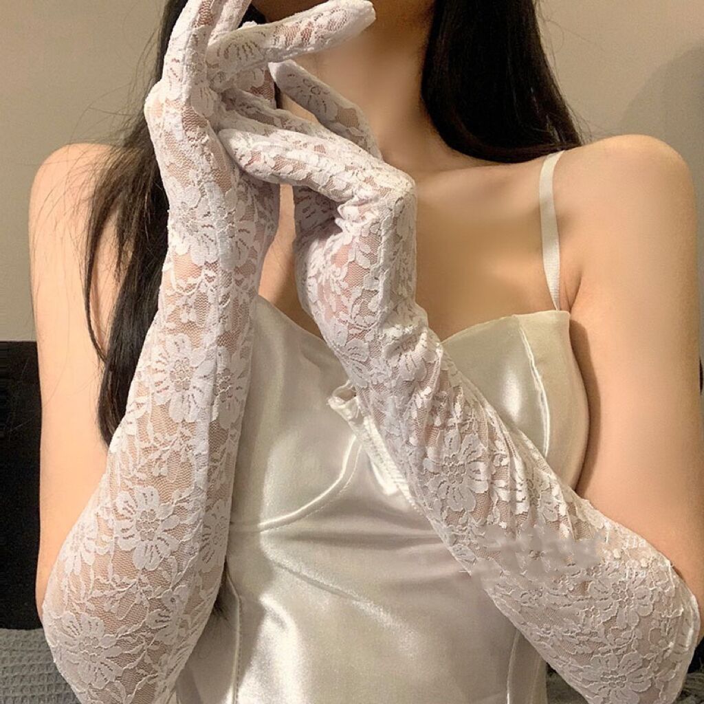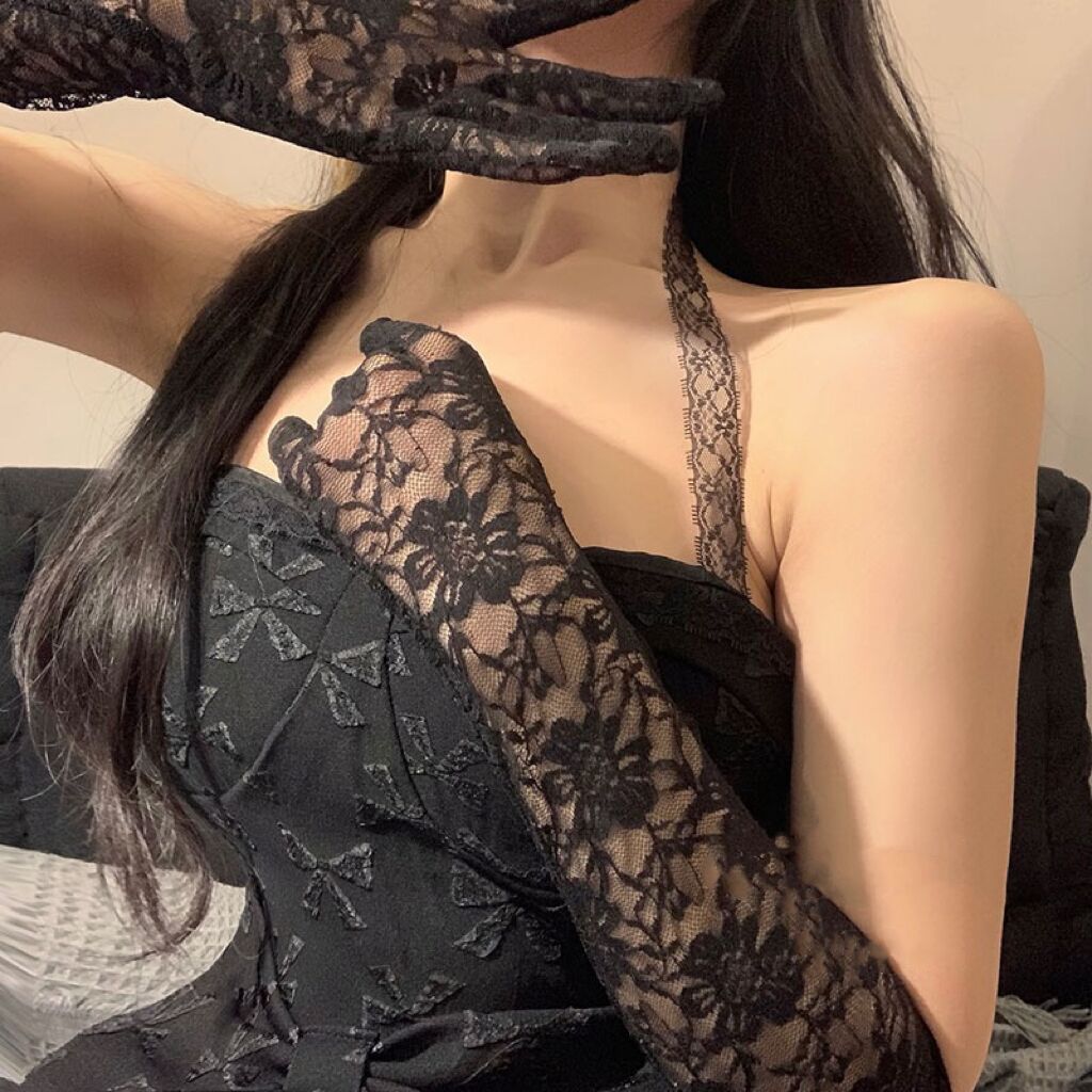 한국 스타일 여성의 그룹 스타일 빈티지 메쉬 꽃 웨딩 로리타 블랙 레이스 장갑 섹시한 사진 소품 블랙 실크 슬리브