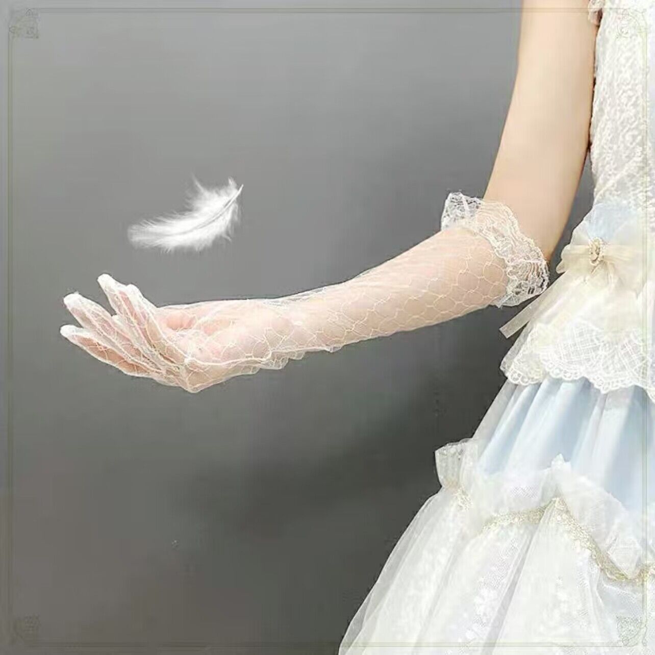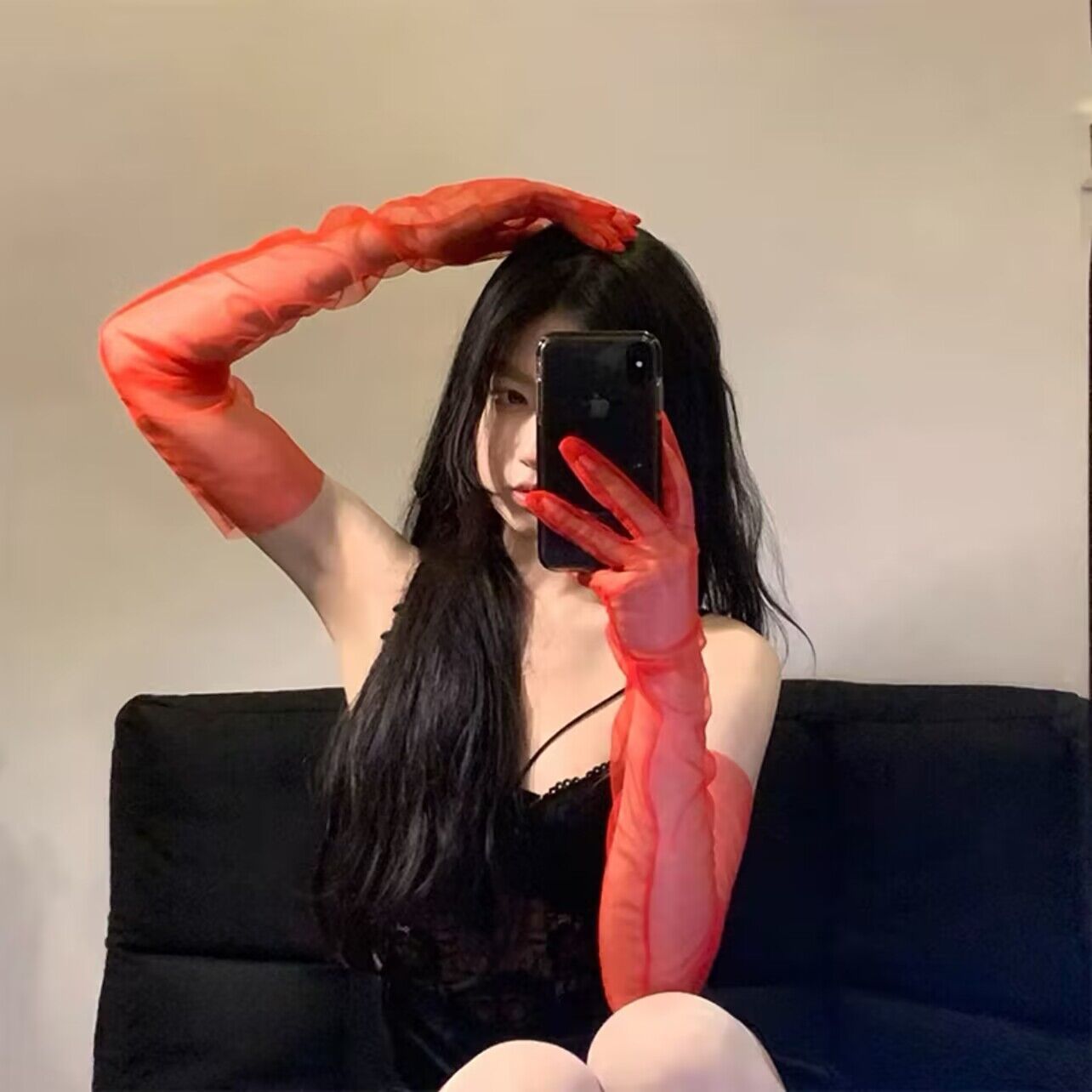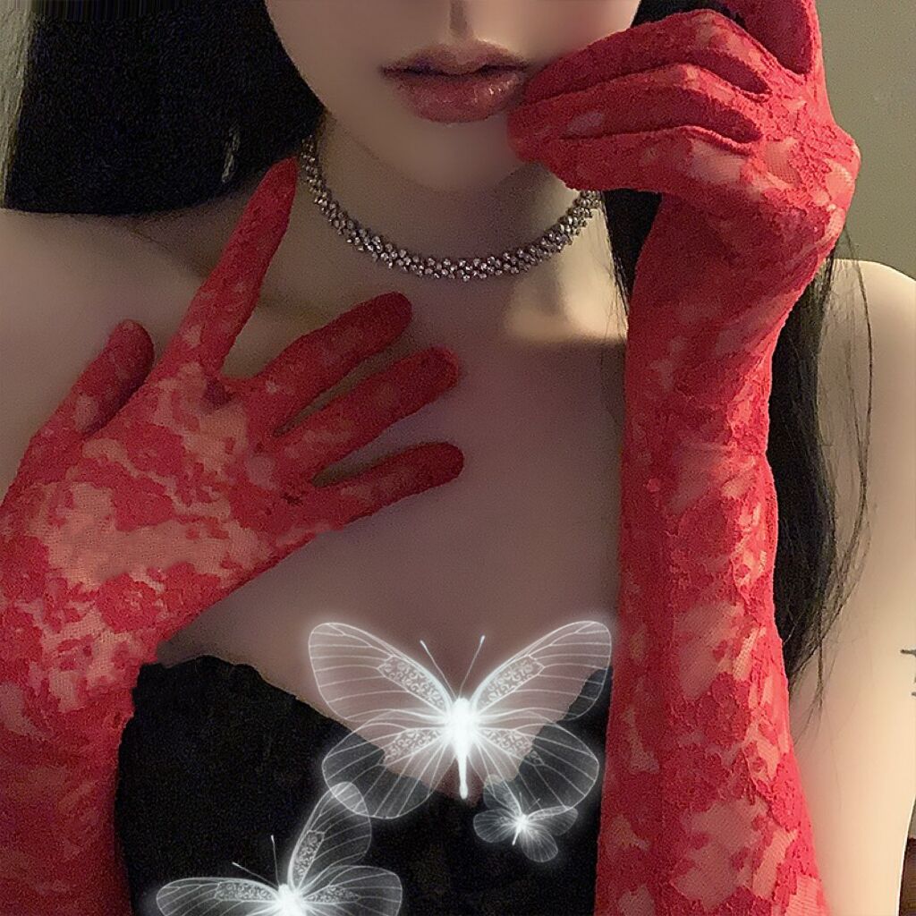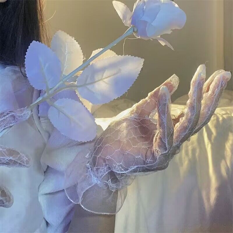 한국 스타일 여성의 그룹 스타일 빈티지 메쉬 꽃 웨딩 로리타 블랙 레이스 장갑 섹시한 사진 소품 블랙 실크 슬리브