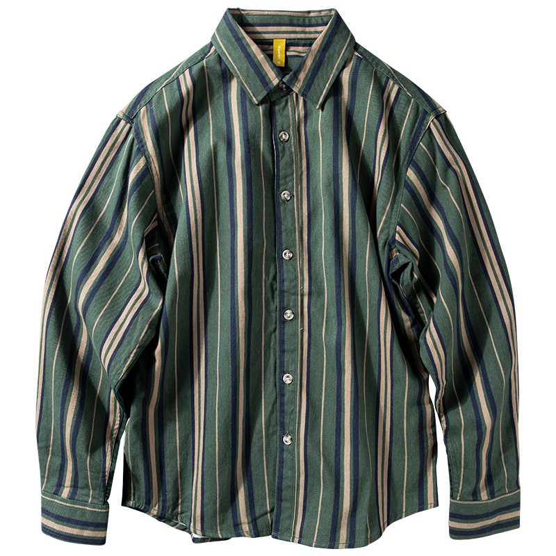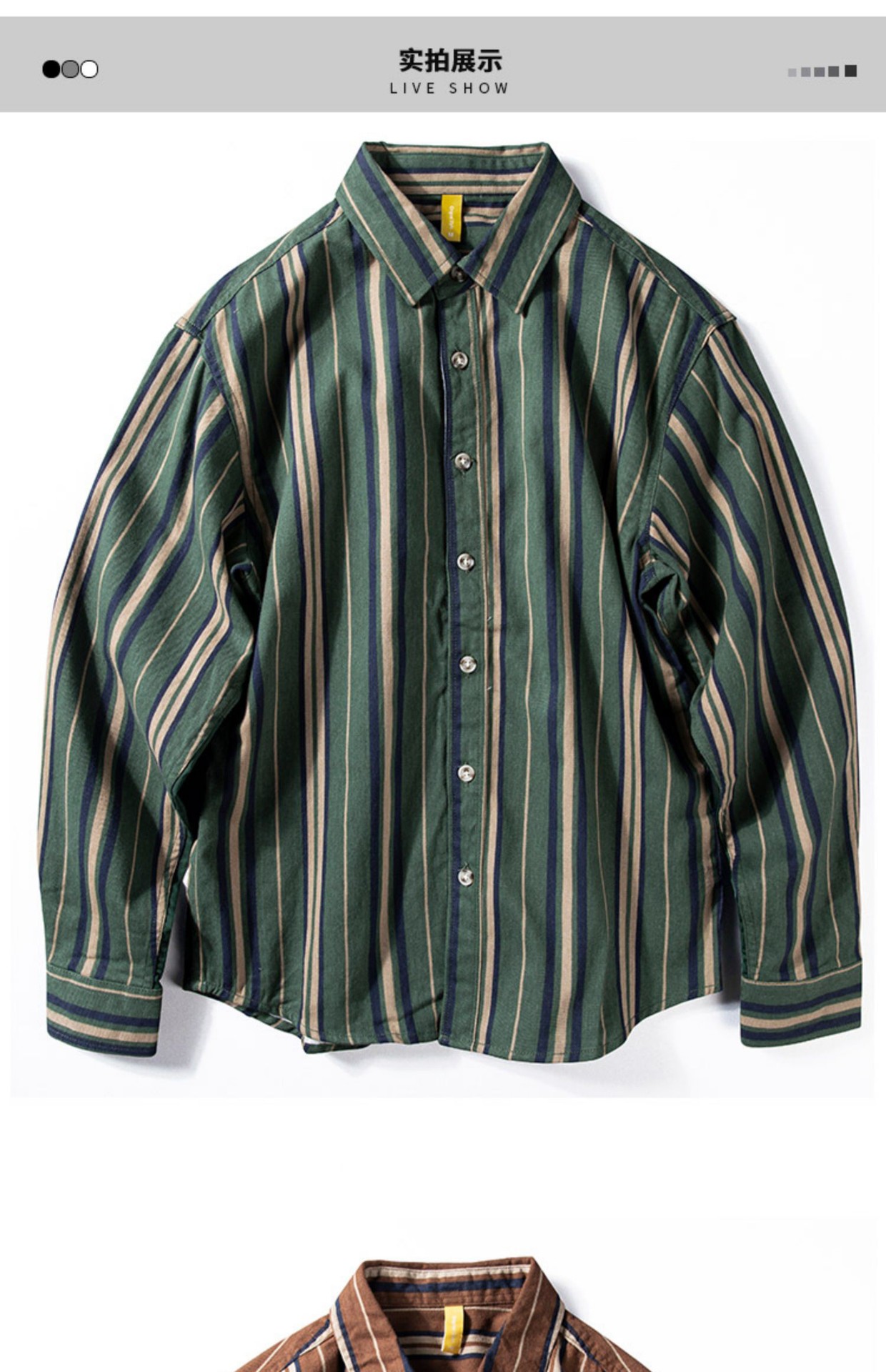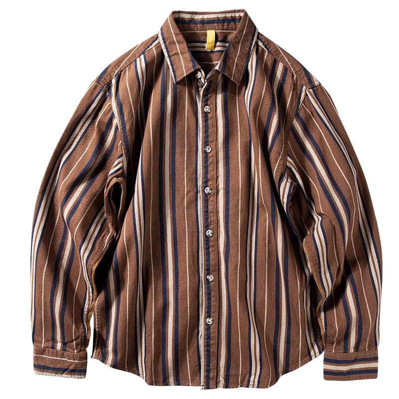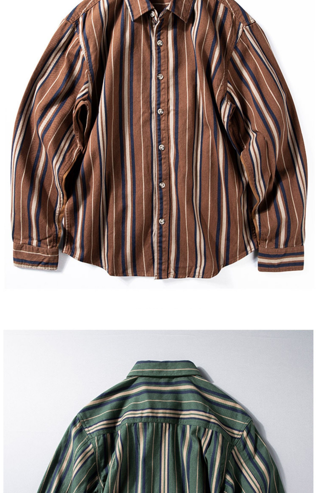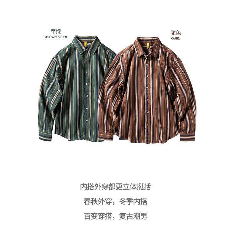 스트라이프 셔츠 남성용 퓨어 코튼 홍콩 스타일 루즈 캐주얼 탑 청소년 일본 스타일 레트로 아티스틱 트렌디 브랜드 셔츠 아우터 남성용스토어 가기