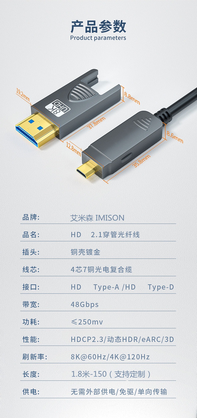 공장 직판 hdmi2.1 광케이블 8K60hz 컴퓨터 셋톱박스-모니터 연결 1hdmi 케이블 고화질 케이블