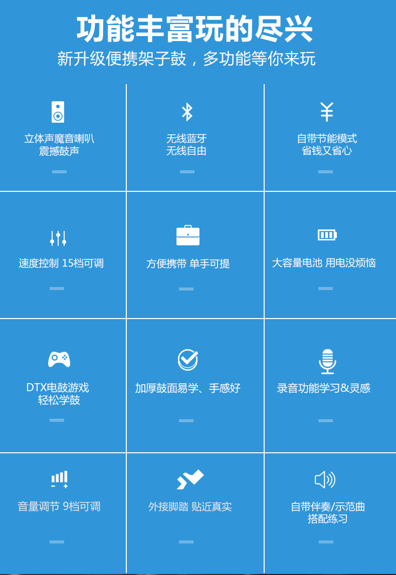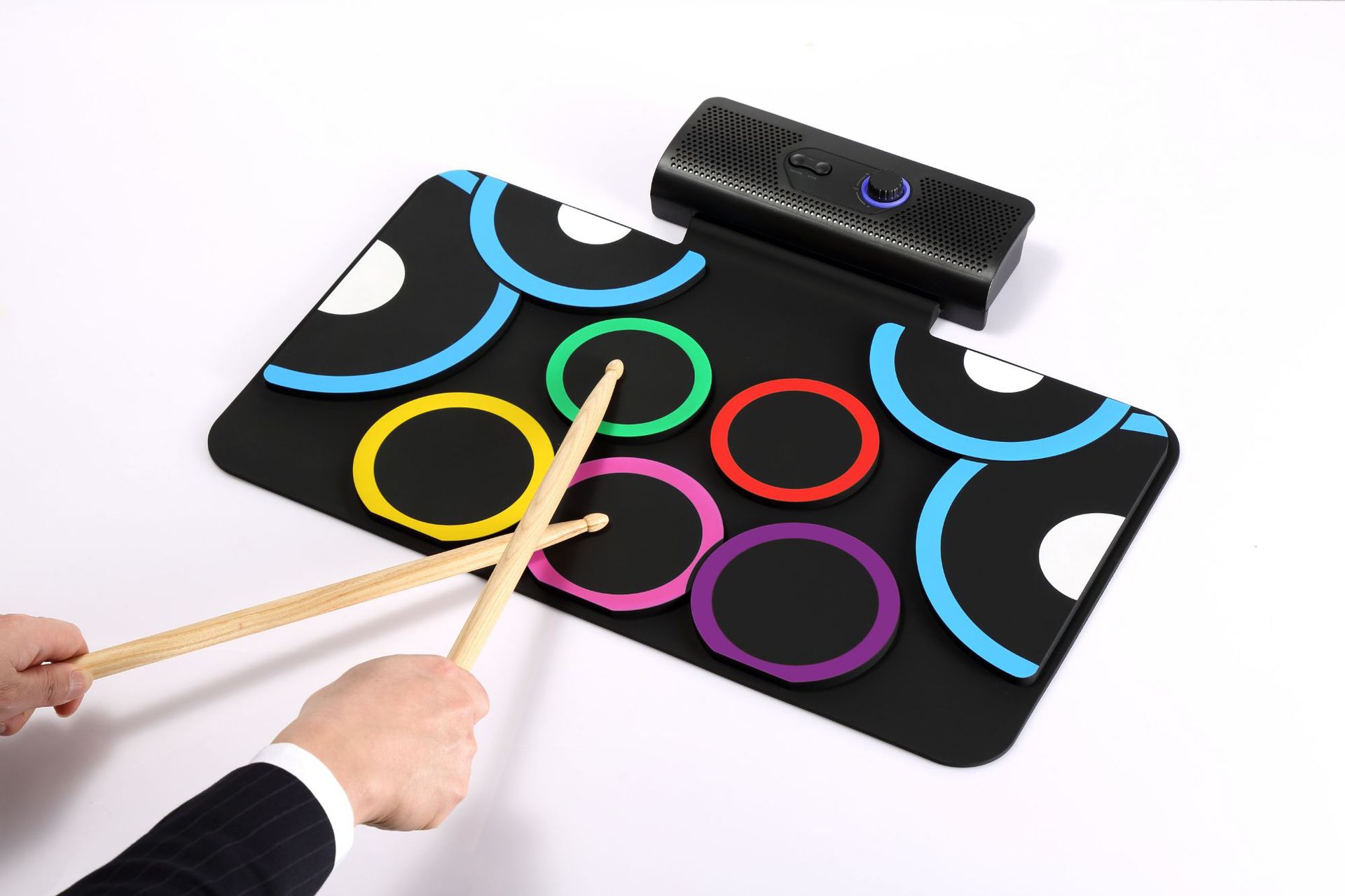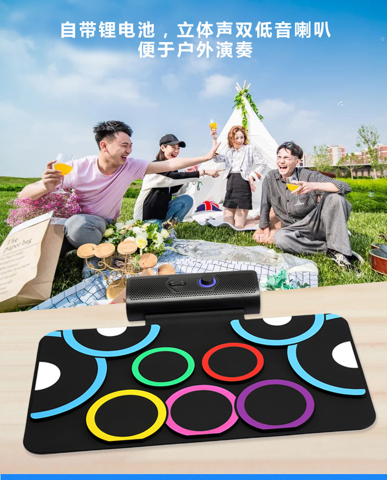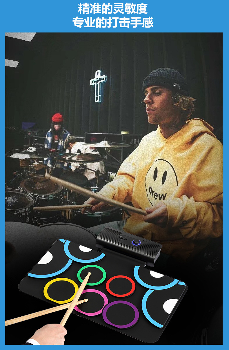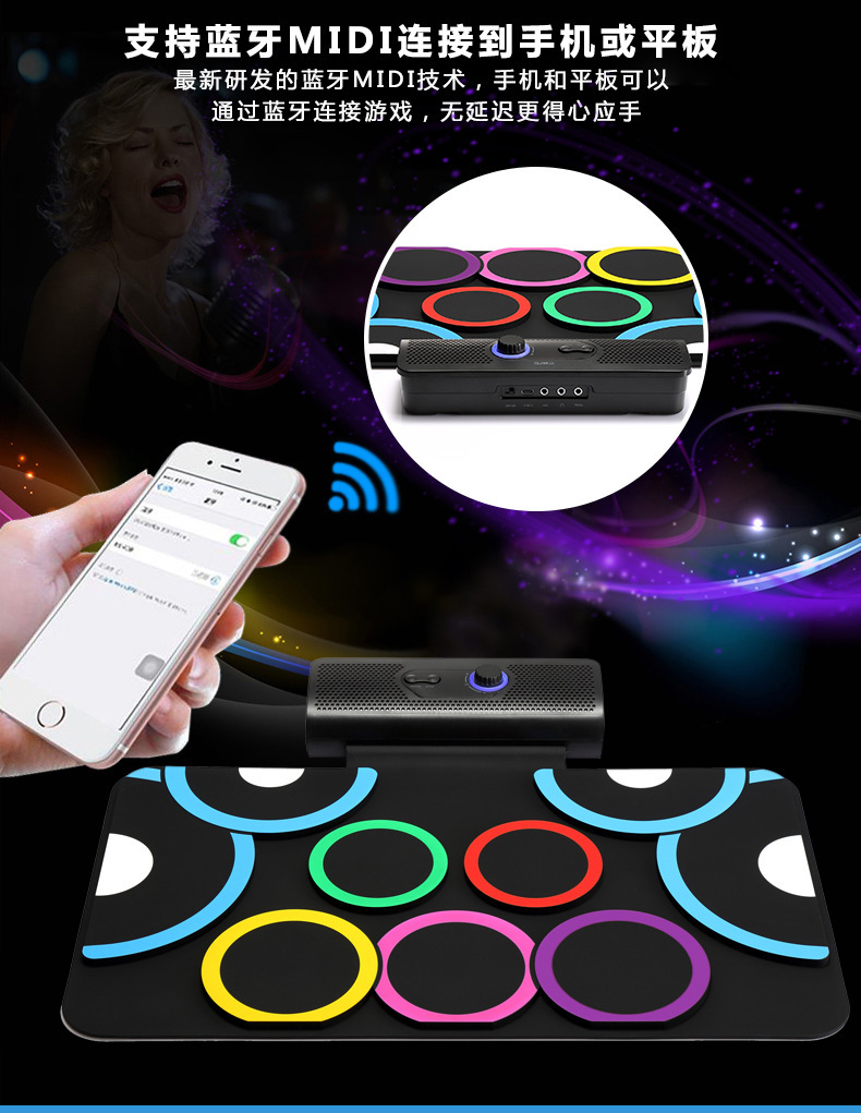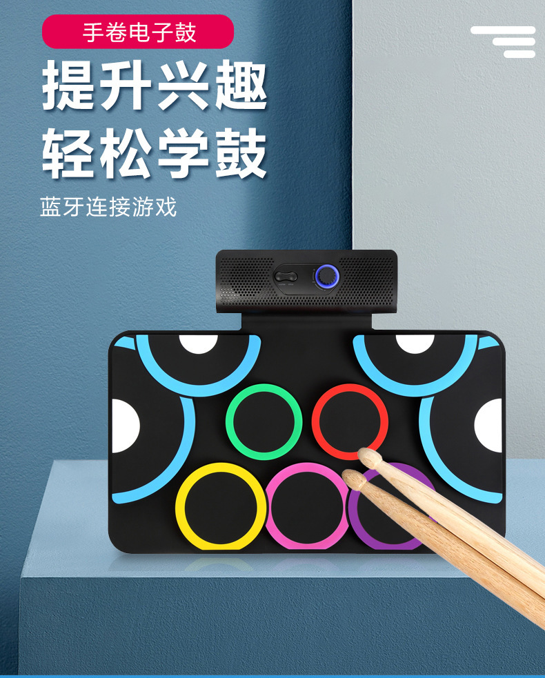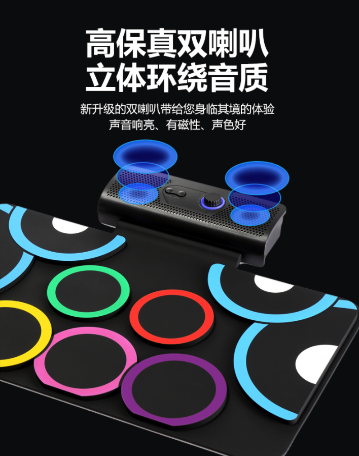 PD-1 핸드 롤 드럼 충전식 듀얼 스피커 블루투스 비디오 게임 DTX 게임 접이식 발 페달 휴대용 실리콘 전자 드럼스토어 가기