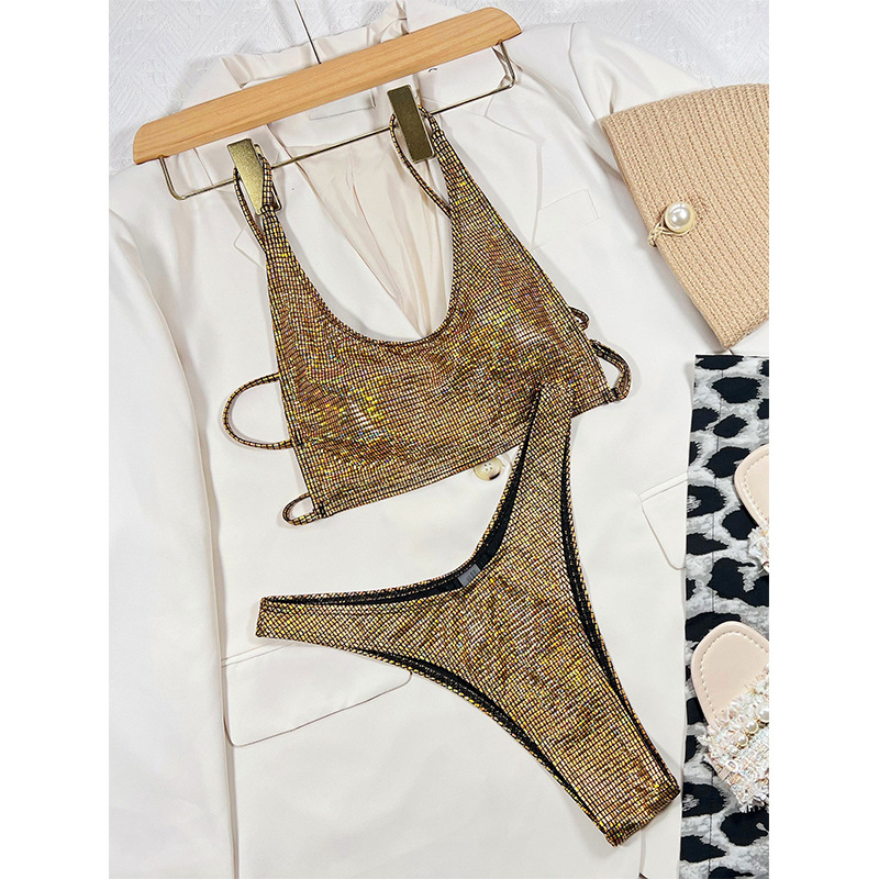 2023 새로운 유럽과 미국의 국경 분할 비키니 여러 가지 빛깔의 그라디언트 특수 직물 졸라매는 끈 아름다운 뒤 아마존 수영복스토어 가기