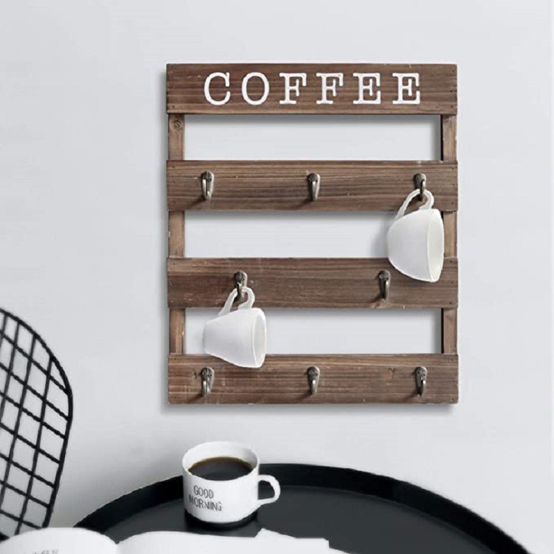 나무 후크 컵 홀더 커피 컵 머그 보관 랙 워터 컵 거꾸로 배수 랙 벽걸이 스토리지 랙