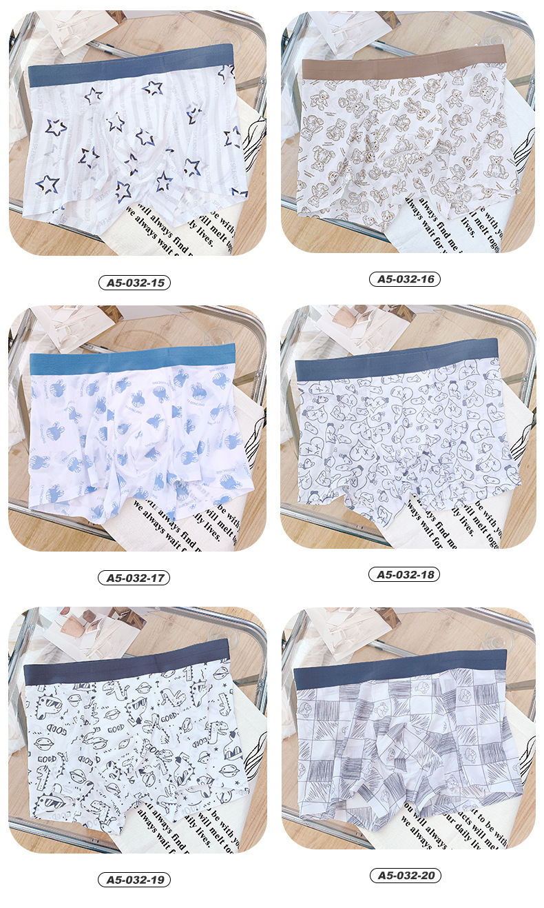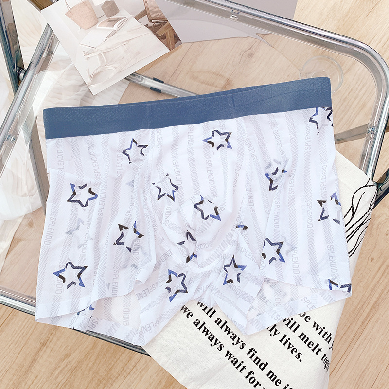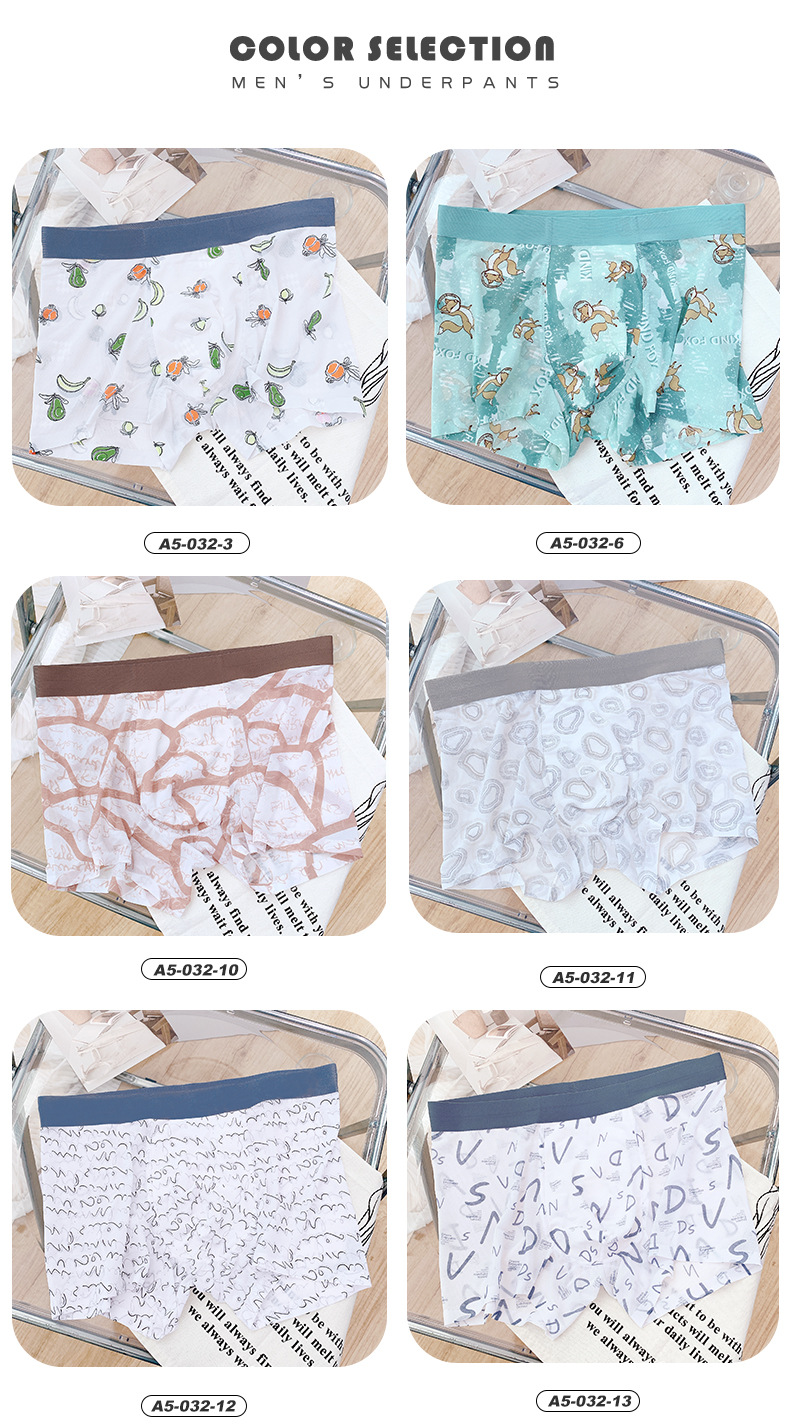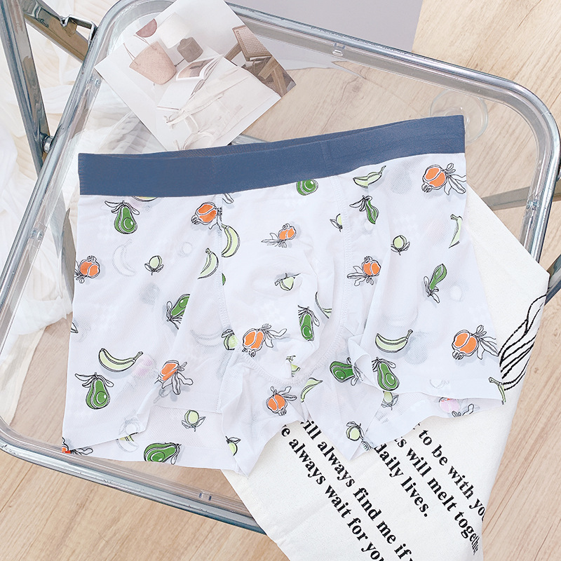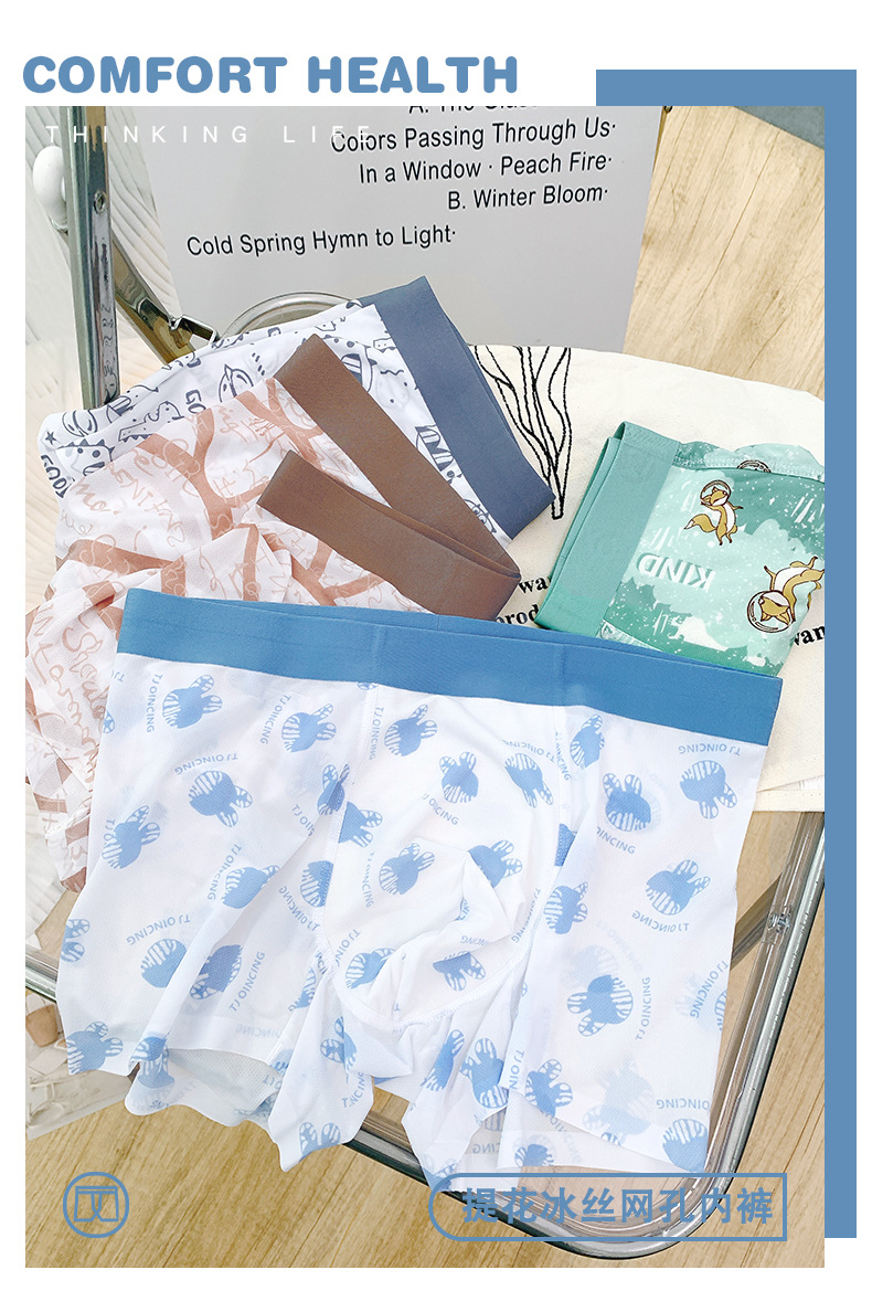[통기성 메쉬] 프린트 남성용 속옷 남성용 아이스 실크 남성용 원활한 복서 반바지 여름 얇은 복서 반바지