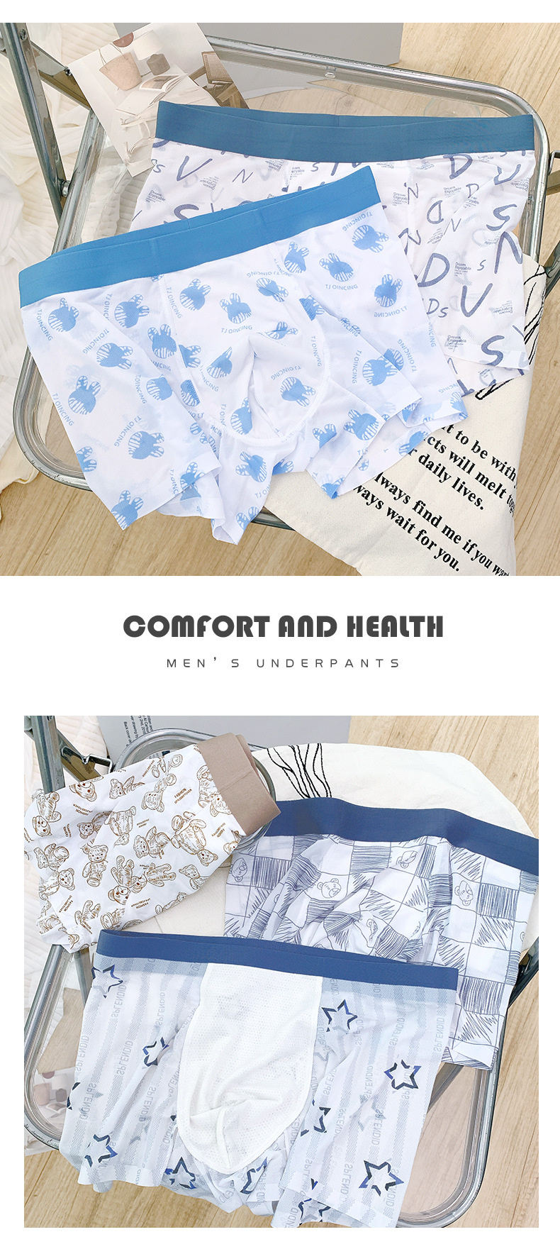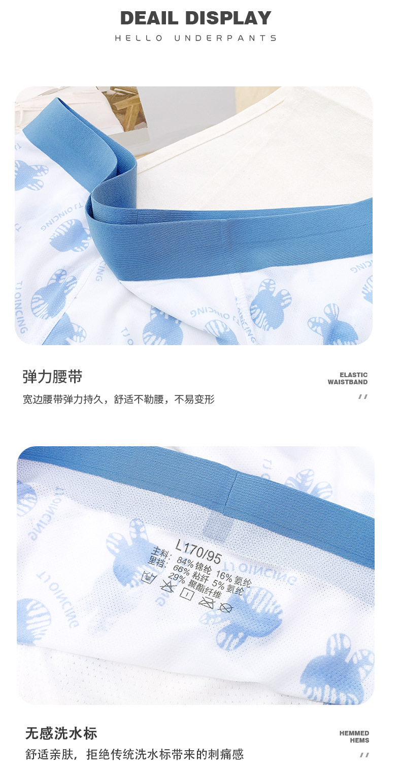 [통기성 메쉬] 프린트 남성용 속옷 남성용 아이스 실크 남성용 원활한 복서 반바지 여름 얇은 복서 반바지스토어 가기