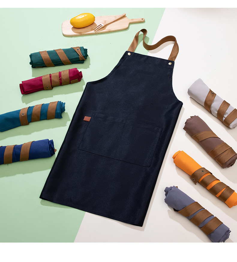 공장 직접 판매 국경을 넘는 크로스 스트랩 앞치마 맞춤형 레스토랑 밀크티 숍 카페 작업 앞치마 로고 인쇄